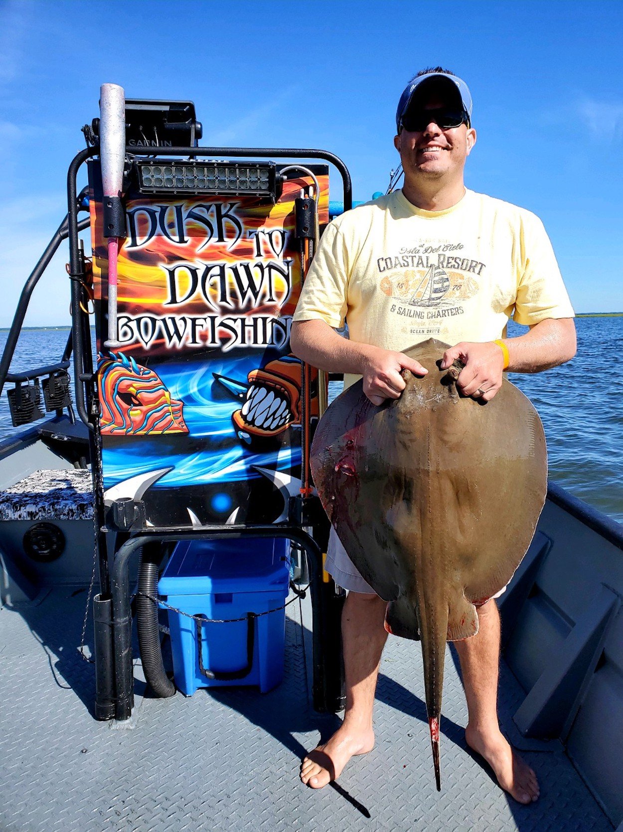 Cownosed and southern rays don’t stand a chance when the water is clean and Captain Marc Spagnola of Dusk to Dawn Bowfishing has gotten some sleep.
