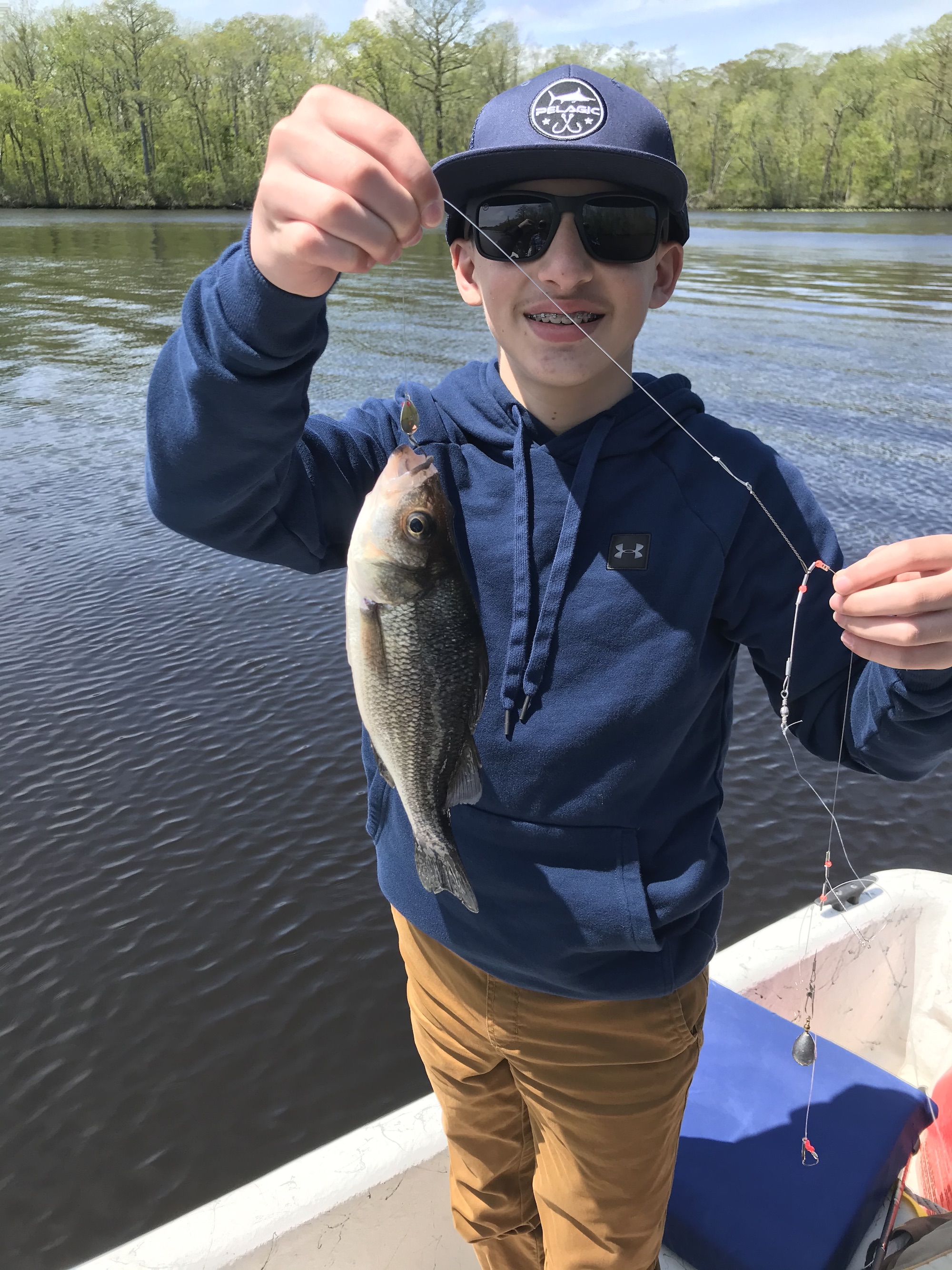 The Cowder family hit the Pocomoke River today for some freshwater fishing and had a great time. Ethan was high hook with seven total fish, Erin had two fish and Sophie and Ryan Cowder each had one. They used bloodworms and caught catfish and tasty white perch.