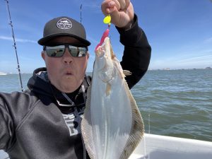 I passed Big Bird Cropper and Shawn on several drifts up in the Thorofare and got Bird’s pics just a bit ago. The duo ended up with two nice keepers while flounder fishing and then had some fun catching rockfish at the route 50 bridge on Roy Rigs.