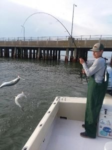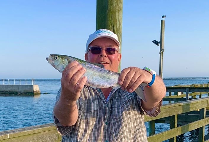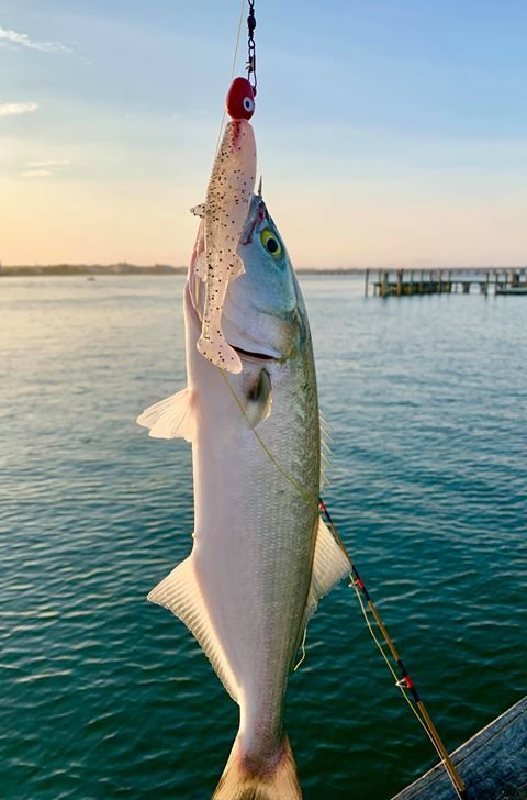 Cayman Man had his Roy Rig working overtime today at the Oceanic Pier where he caught some shad and some snapper bluefish.