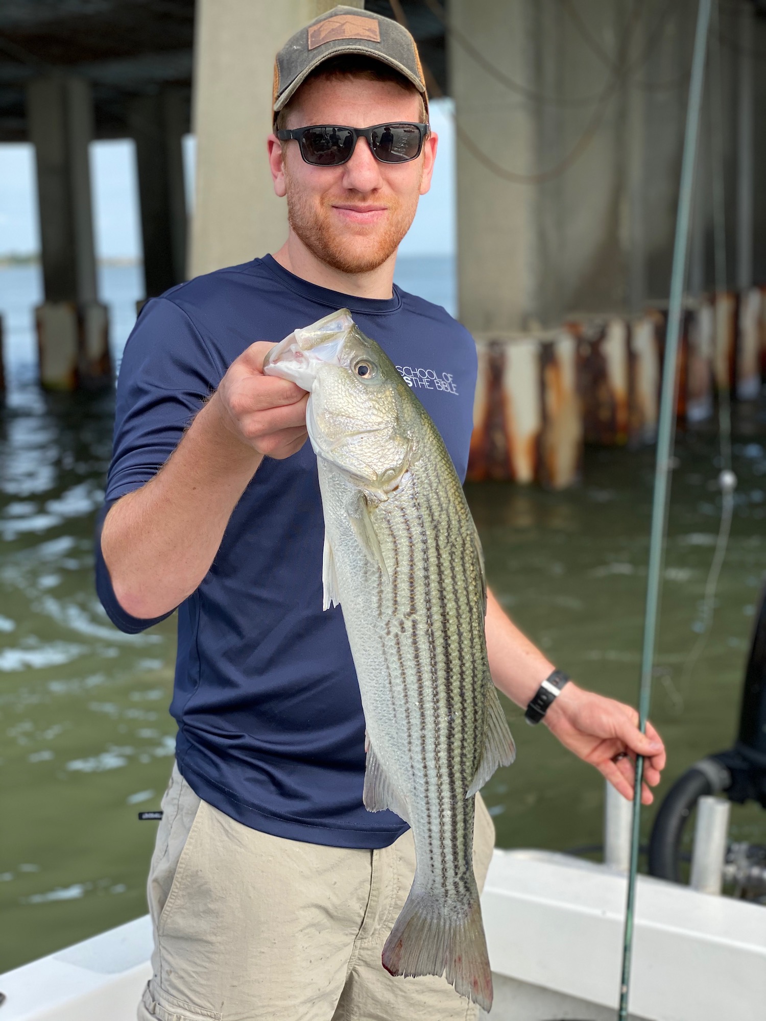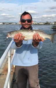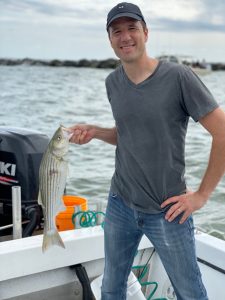 Inshore fishing is very good right now with lots of different species available to target. The list includes flounder, rockfish, bluefish, weakfish, speckled trout, triggerfish, tautog and sheepshead with a couple of other species like red and black drum around too. Captain Chase Eberle of Chasin’ Tides Charters was testing out his new phone today and he had some great subjects after fishing the route 50 bridge. Captain Chase put his crew on bluefish, rockfish and flounder on today’s trip.