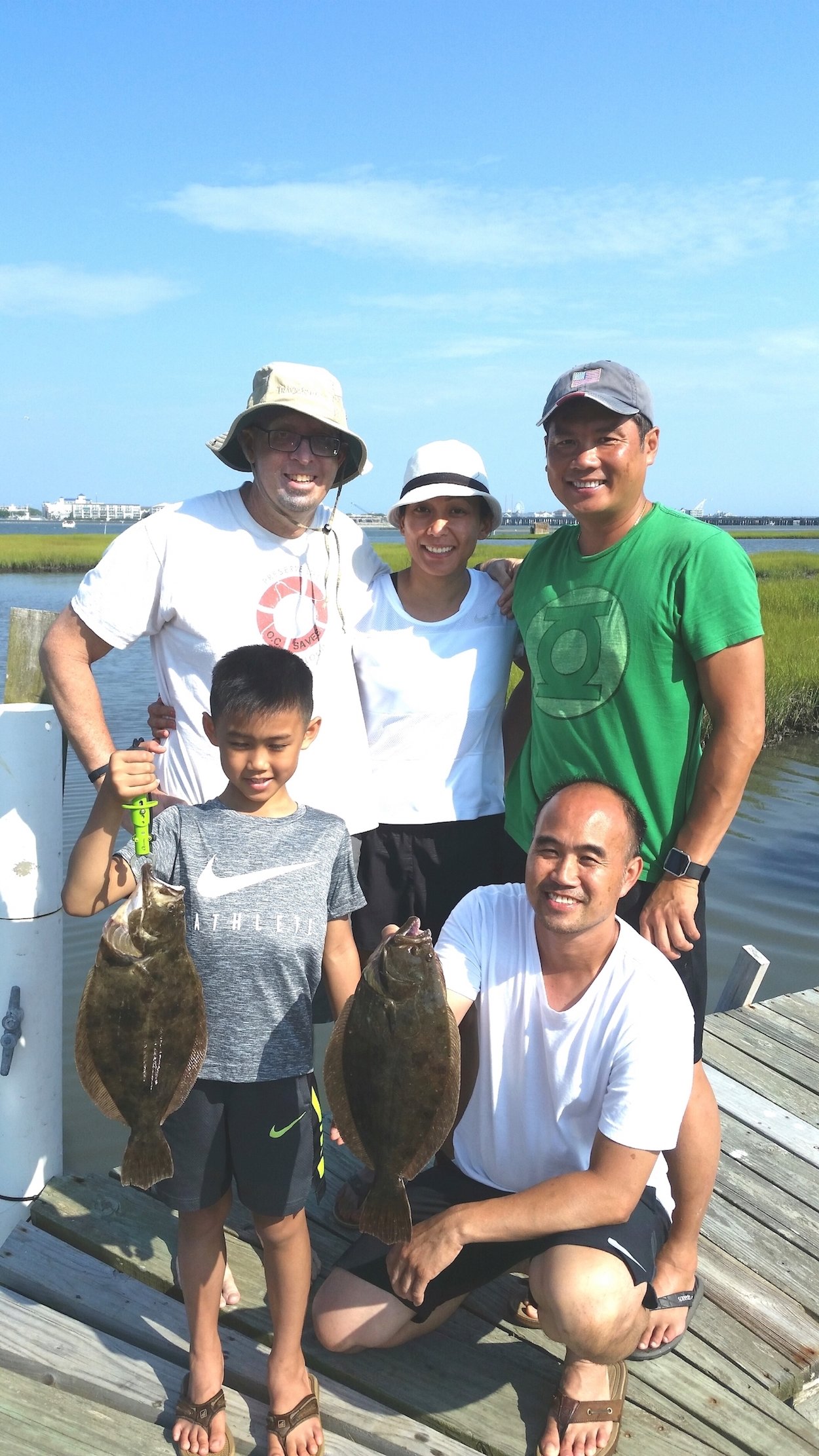 Captain Brad McCabe of Bay Time Charters fished the bay this afternoon and had some luck with the keeper flounder. Captain Brad fished with Dave Wilson, Santi Silaphone, Suen, Lisa and son Ethan Thammarat on Ethans first ever flounder trip.