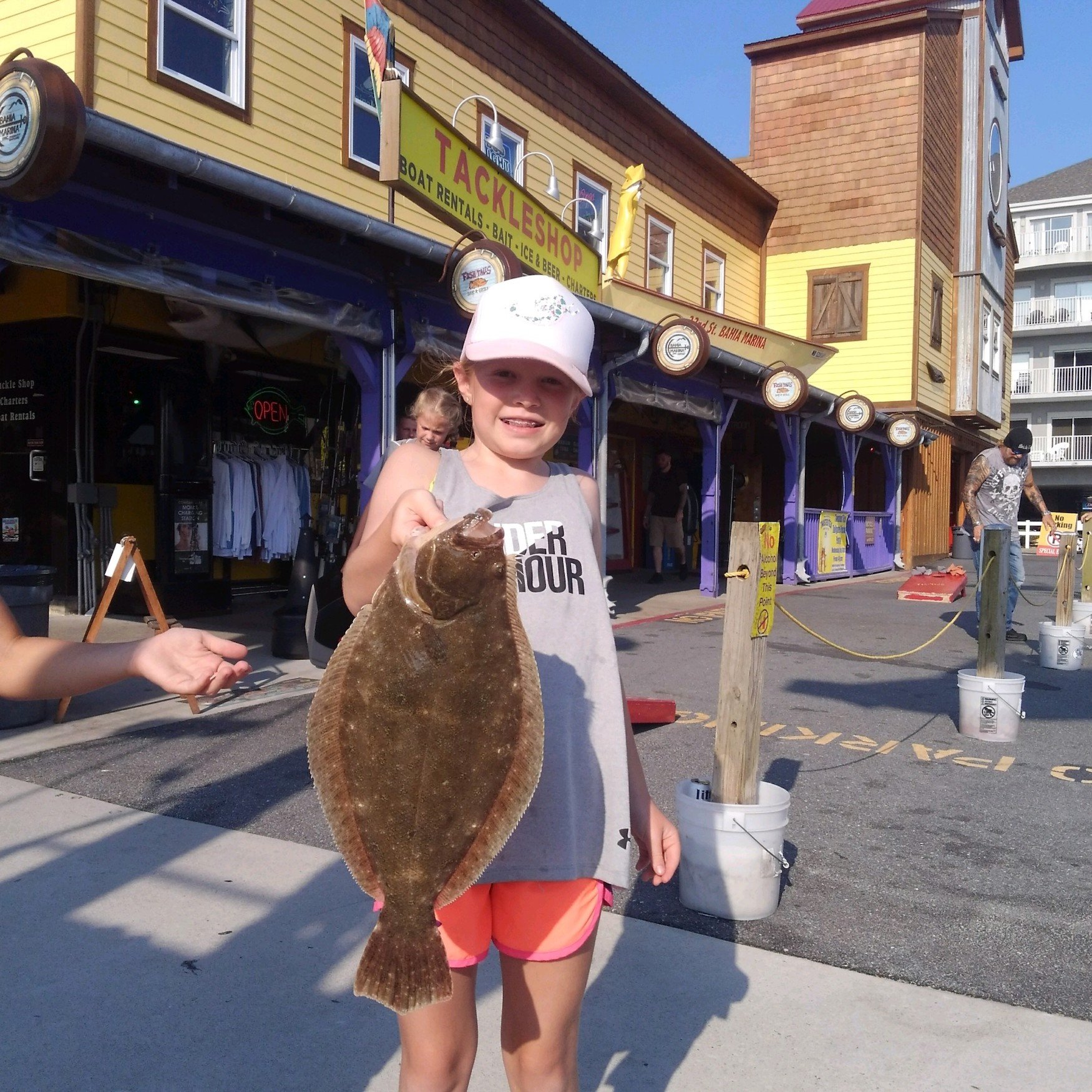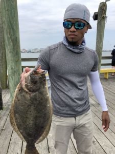 Bear down at the Oceanic Pier saw a really nice flounder come into the shop when Johan from Westminster, MD caught this big 23″ keeper on a jighead with a Gulp.