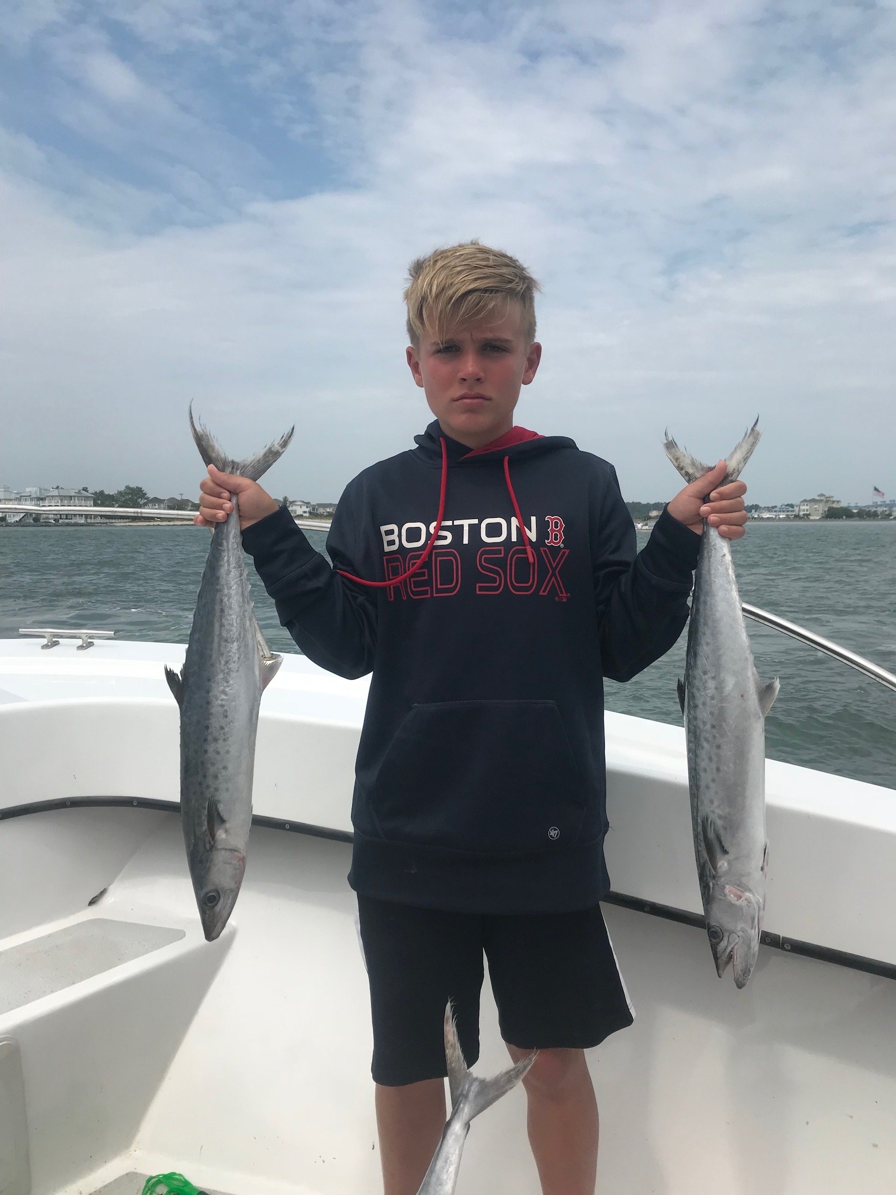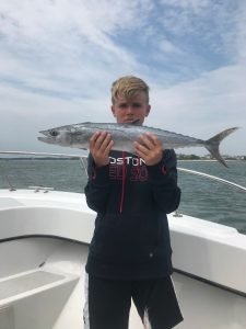 Chasin’ Tides Charters with Captain Chase Eberle was in the ocean this morning, but he was doing some inshore trolling. Captain Chase put Garret on three citation sized Spanish mackerel between 25″ and 27″ and 20 bluefish.