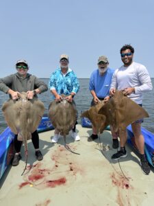 Captain Marc Spagnola of Dusk to Dawn Bowfishing did a little flounder fishing yesterday with loads of throwbacks and this 17.5″ keeper. Today it was good shooting in the south bay for his crew.