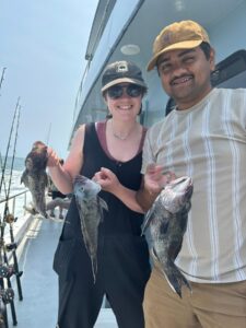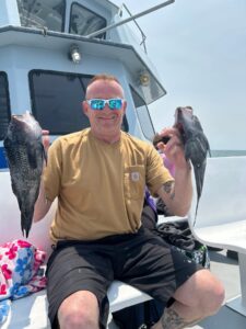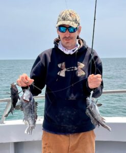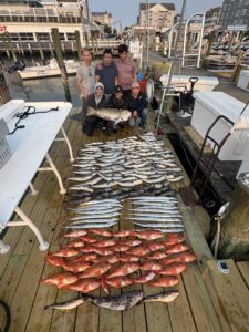 Captain Chase Eberle and the crew of Chasin’ Tides Charters has been on a roll lately with tons of fish being pulled to the rail. Anglers are catching flounder, sea bass, sand tiger sharks, ribbonfish, bluefish and some limits of 30 blue line tilefish and 42 golden tilefish.