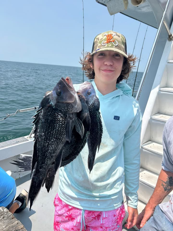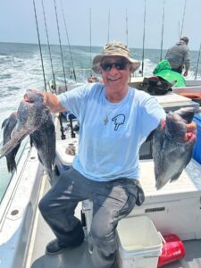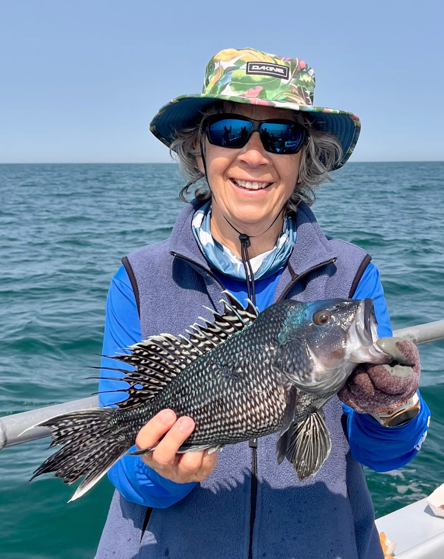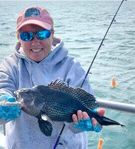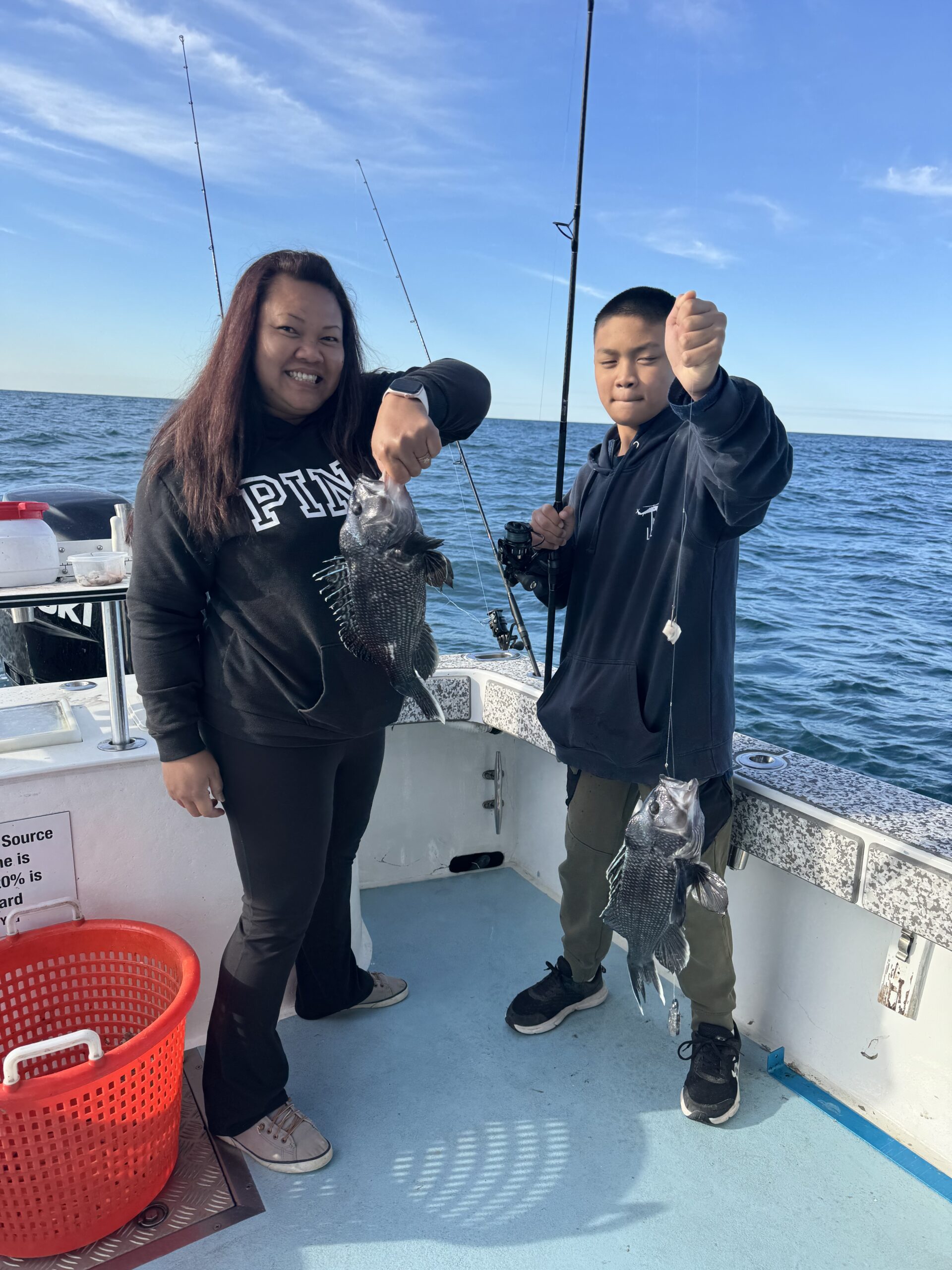 Captain Monty Hawkins of the Morning Star had the ladies showing everyone how to fish on board today with a nice load of big sea bass coming over the rail.