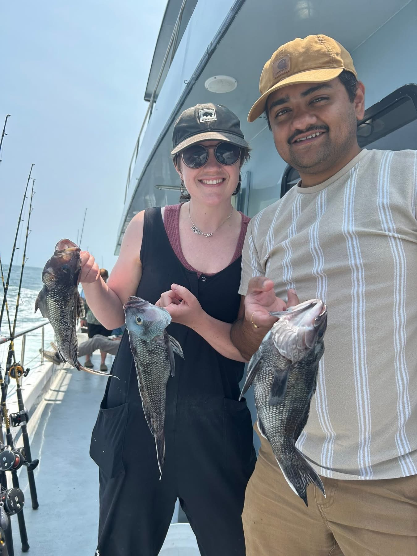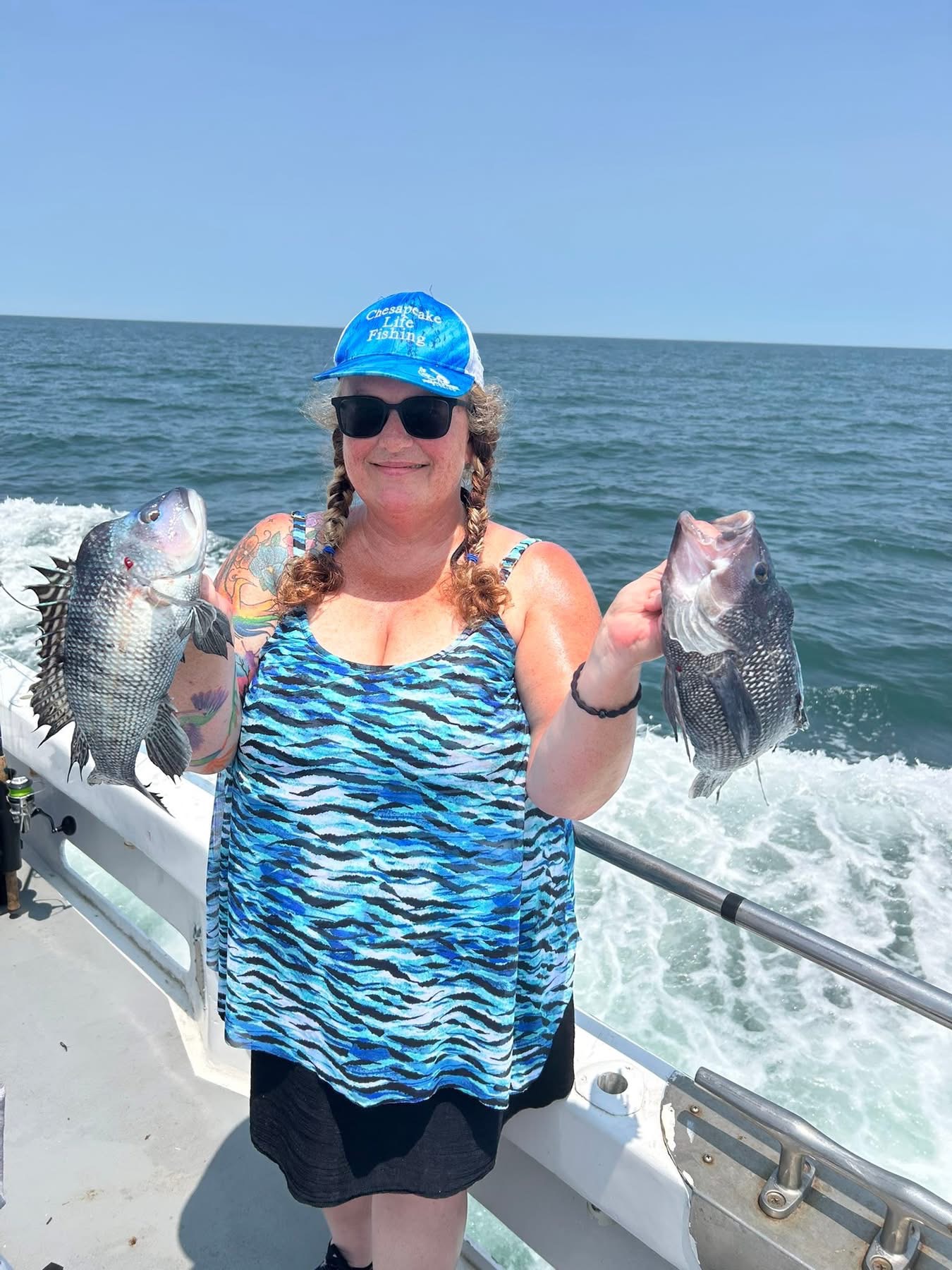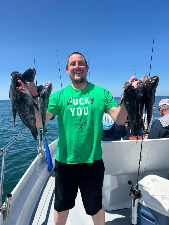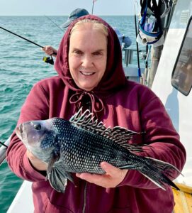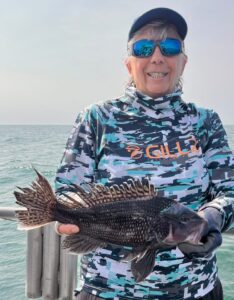 Captain Monty Hawkins of the Morning Star had the ladies showing everyone how to fish on board today with a nice load of big sea bass coming over the rail.