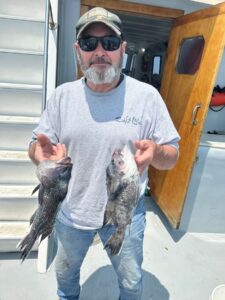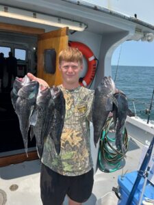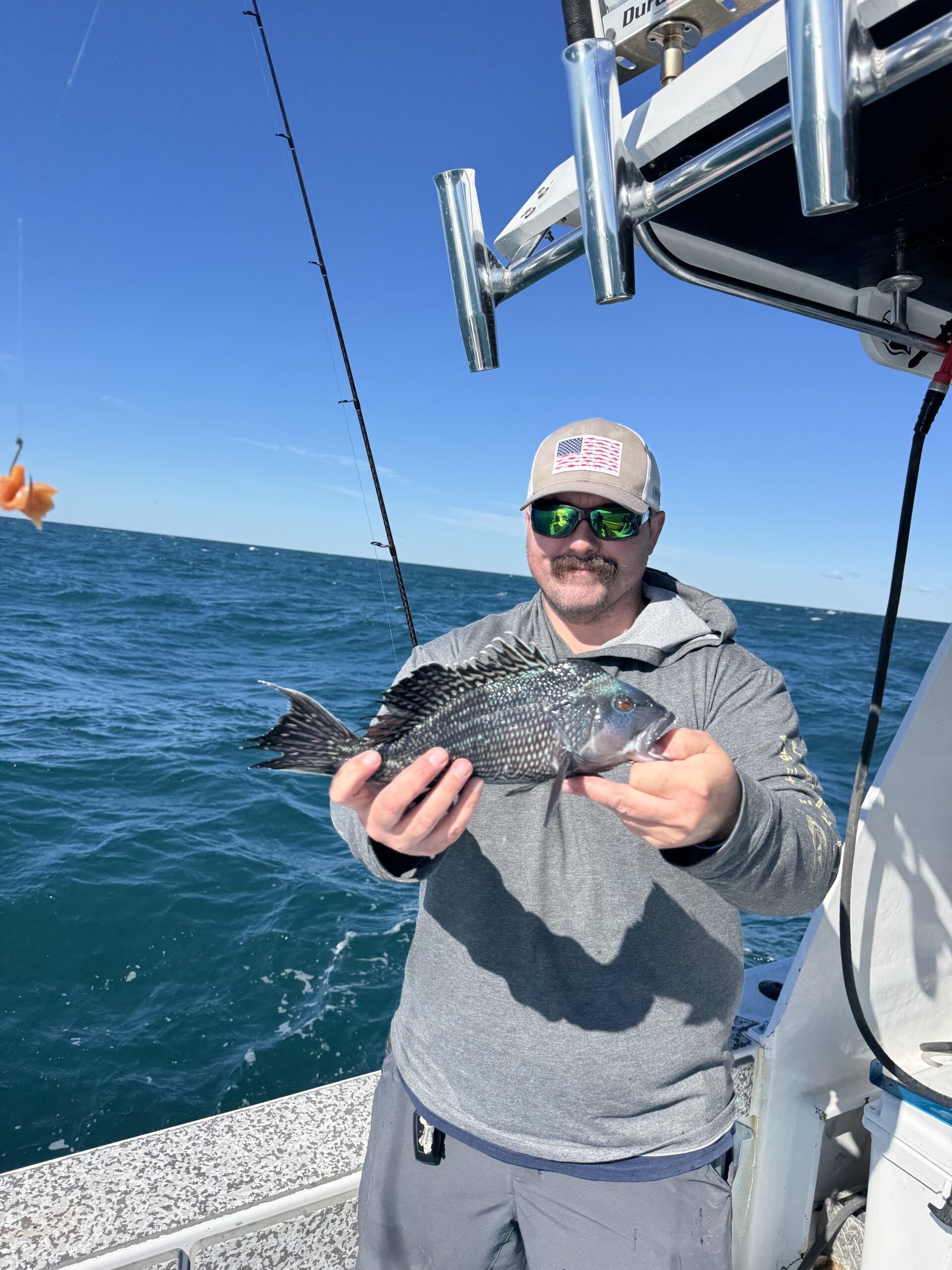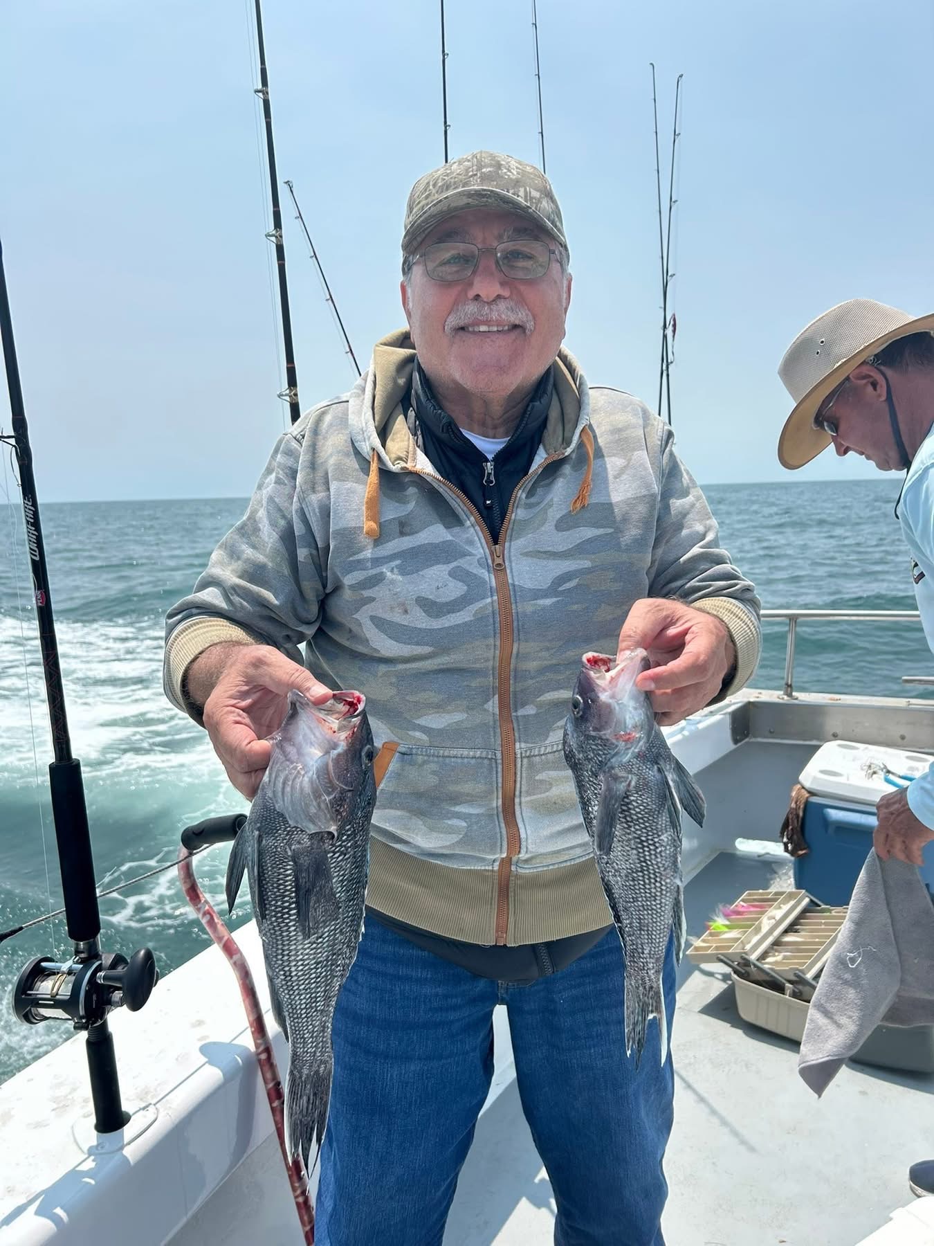 Captain Chris Mizurak of the Angler reported good fishing today with plenty of keeper sea bass going home in coolers.