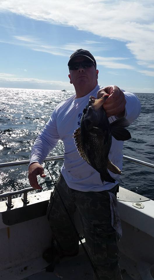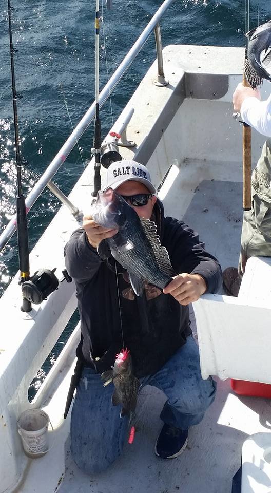 Sea bass season is in full swing once again and the fishing was good again today. The Angler with Captain Chris Mizurak and mate Dean Lo sailed again today and had a good trip with sea bass around the rail and some bluefish were also mixed in.