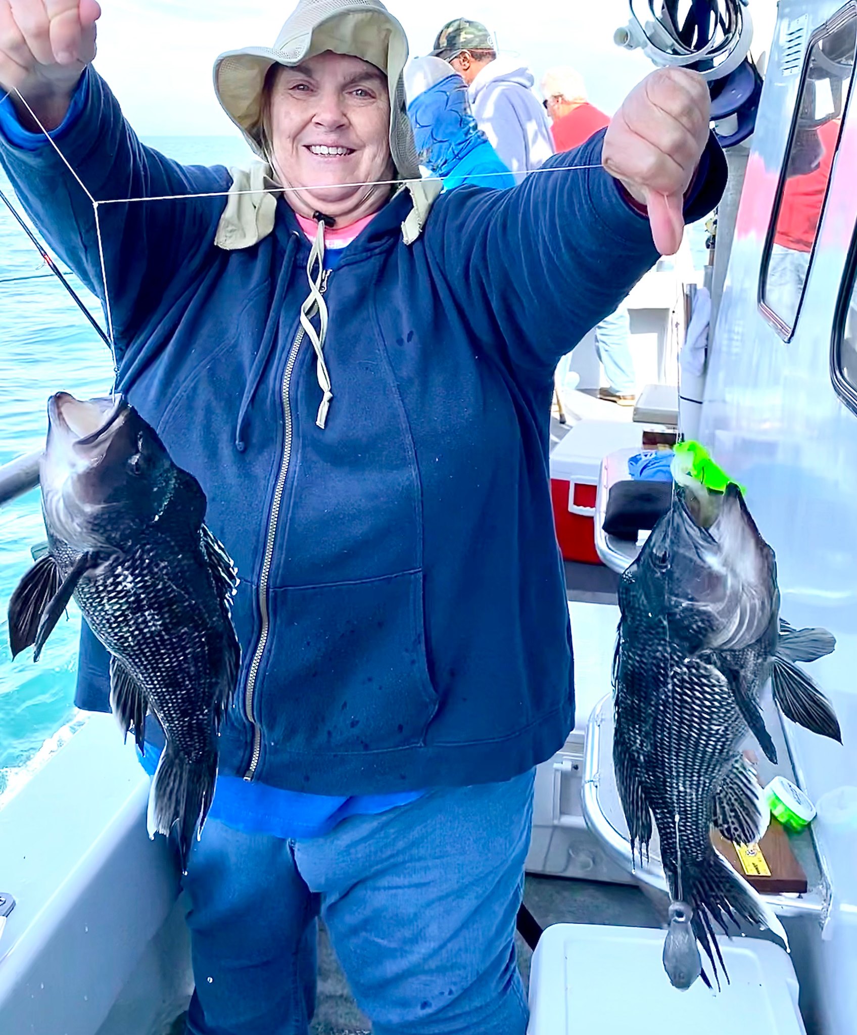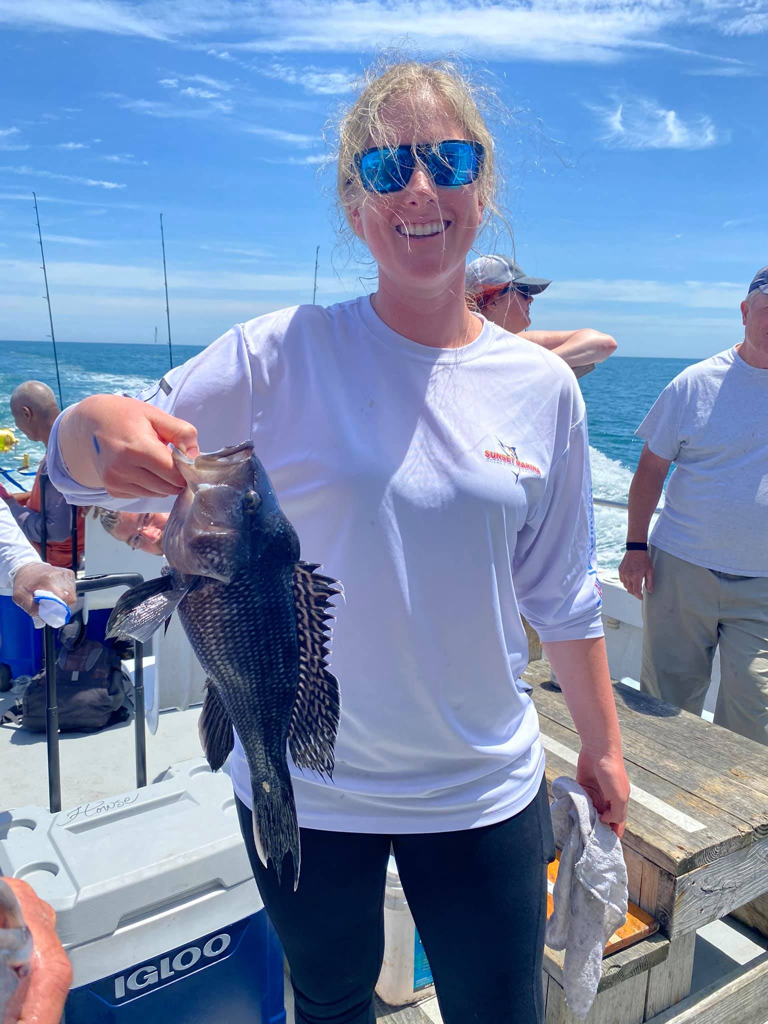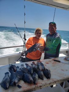 Captain Victor Bunting of the Ocean Princess has been having some great luck with the sea bass this week and today was no different. Folks are going home with lots of quality fish.