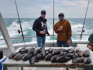 Sea bass fishing was solid again today and ocean conditions made it very enjoyable too. Captain Chris Mizurak of the Angler had a great day with some big knot heads up to 3.5 pounds.