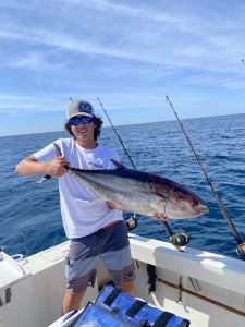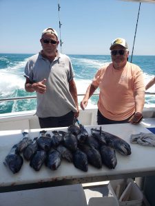 The tuna fishing outside of the Poorman’s Canyon has been very, very good the past few days and today was no different. Several boats caught both their “under” and “over” bluefin tuna today and had happy clients because of it. Captain Willie Zimmerman of the RoShamBo had another great day out in the Poorman’s catching a 48″ “over” bluefin and three “under” bluefin. The crew also released another 10 “under” fish in some great weather.