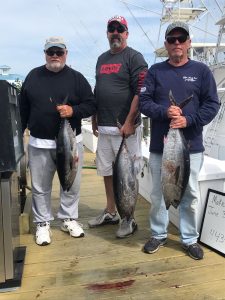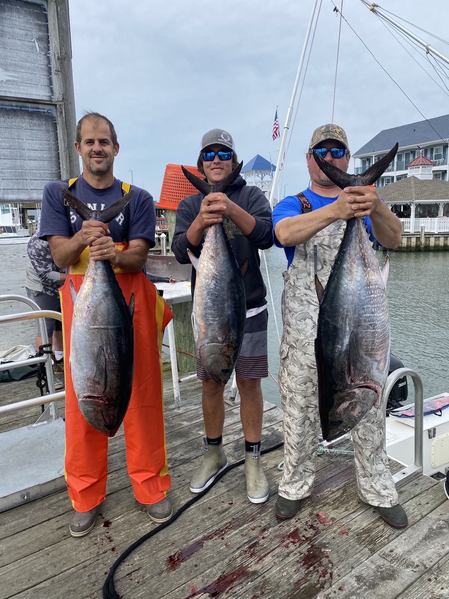 Captain Joe Drosey of Rhonda’s Osprey is back in OC for the summer and today they had a great day of fishing offshore putting their 3 “under” bluefins in the box and releasing another dozen fish. Photo by Sunset Marina.
