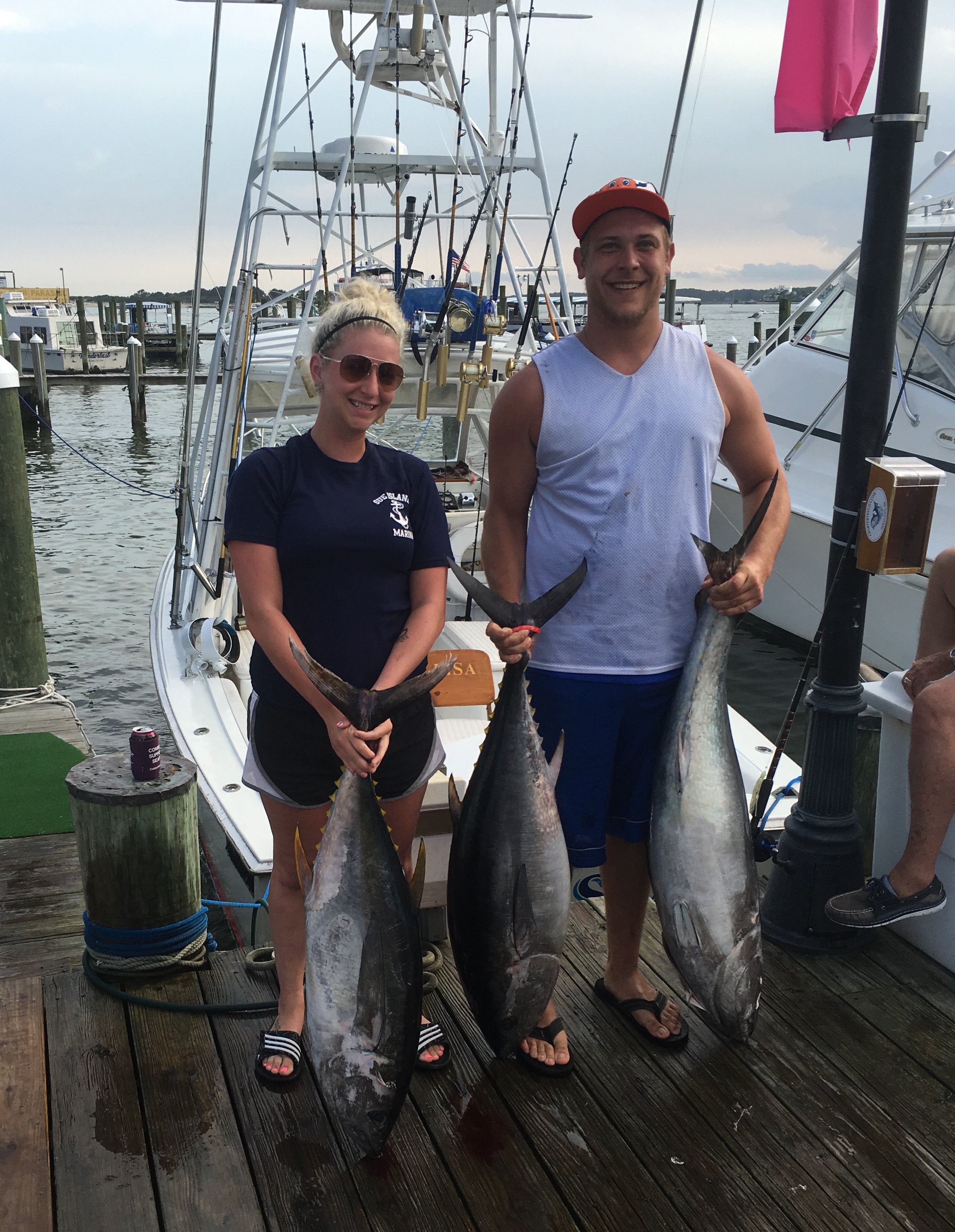 It was a hot one today….on land and on the water. Temperatures on the beach were pushing 100 degrees today, but the humidity wasn’t too high so it was at least bearable. It was also hot in Massey’s Canyon first thing this morning as the chunking fleet had some awesome tuna fishing early on. Fishing for the inshore fleet was good as well as the party boats and inshore charters had some luck with the flounder, sea bass and even some mahi.