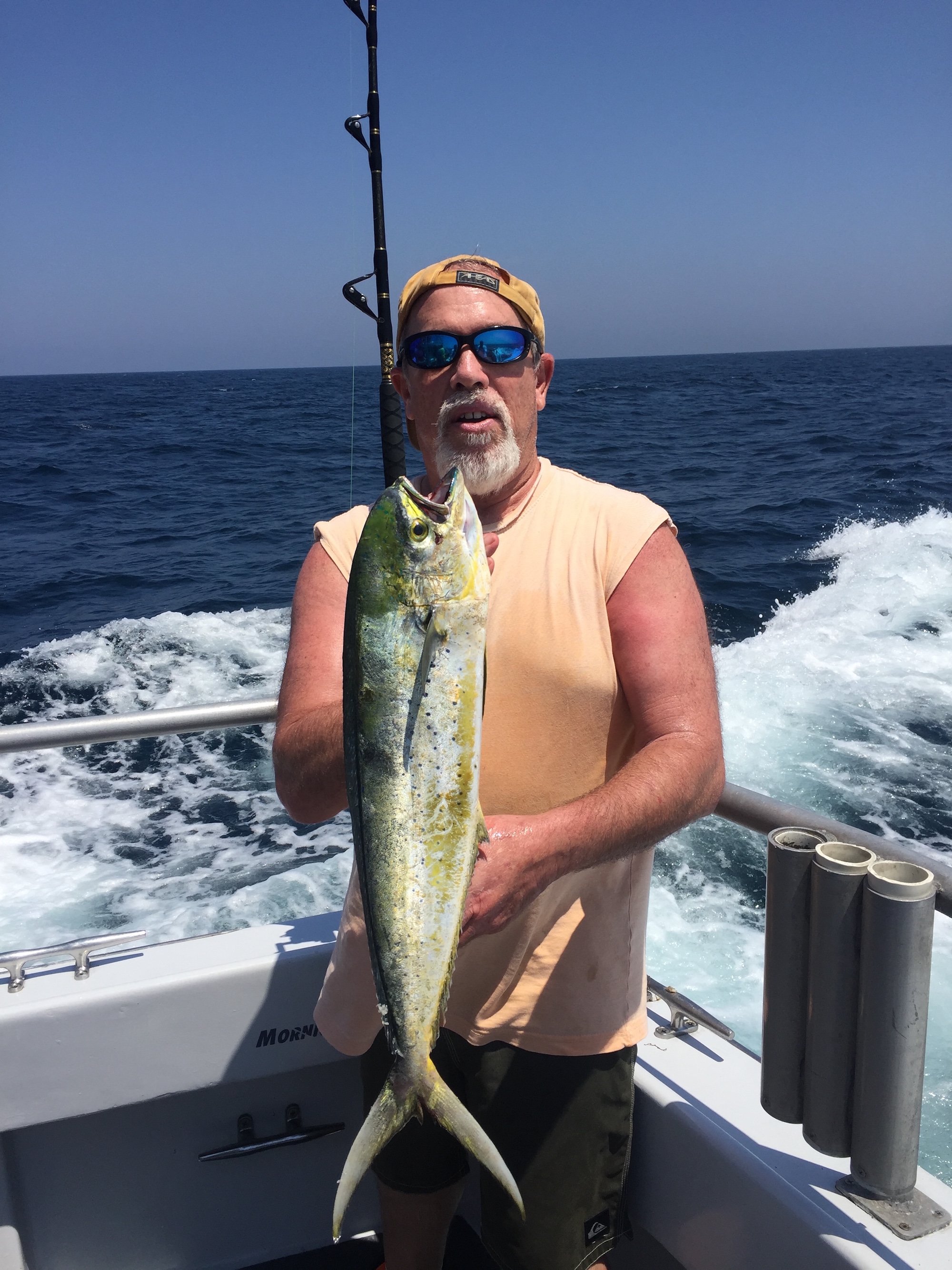 The crew of the Spring Mix II was out for a trolling trip at the Hot Dog today. Captain Chris Watkowski and mate Ayrton Pryor put their anglers on three really nice gaffer mahi trolling ballyhoo.