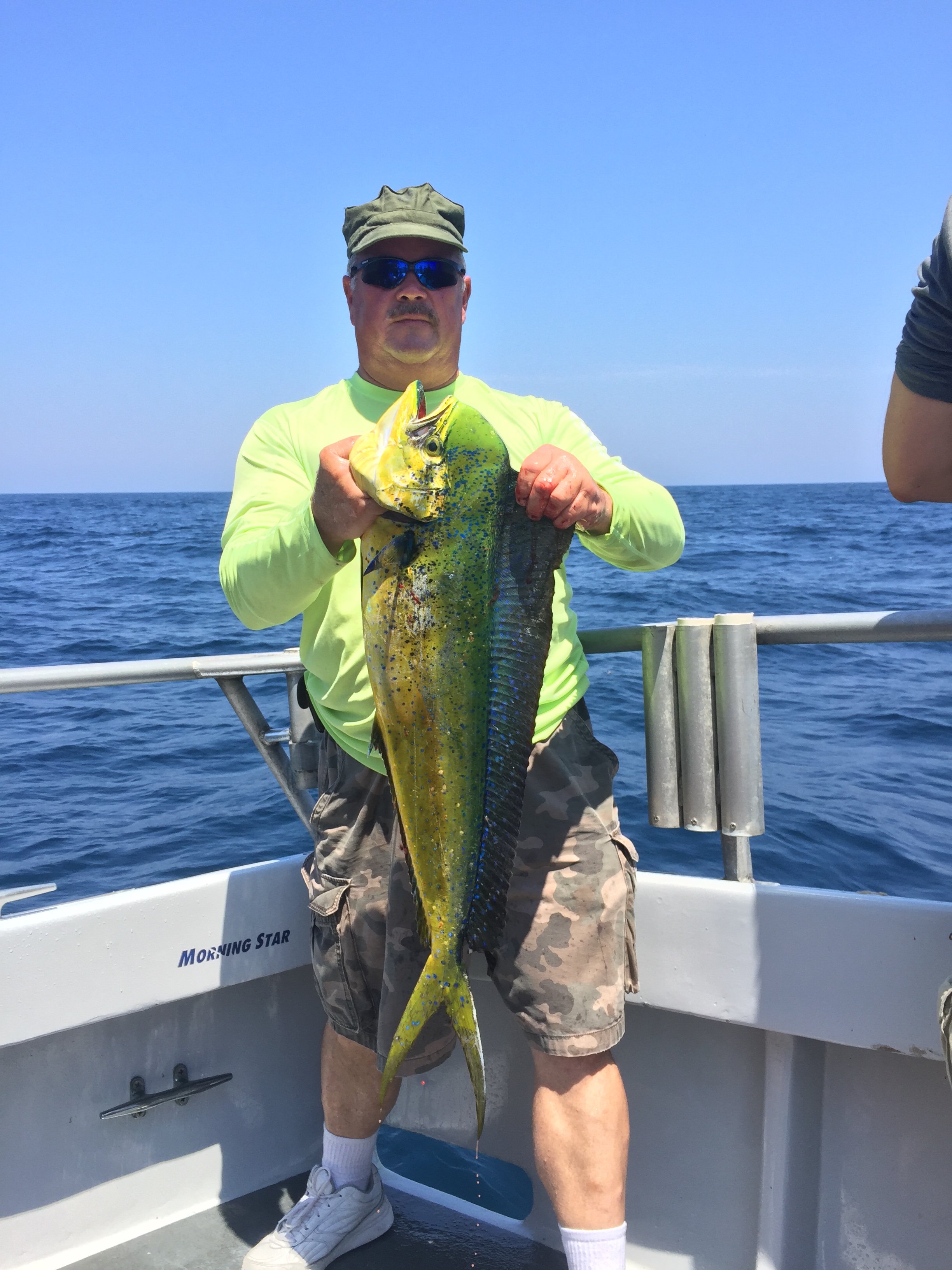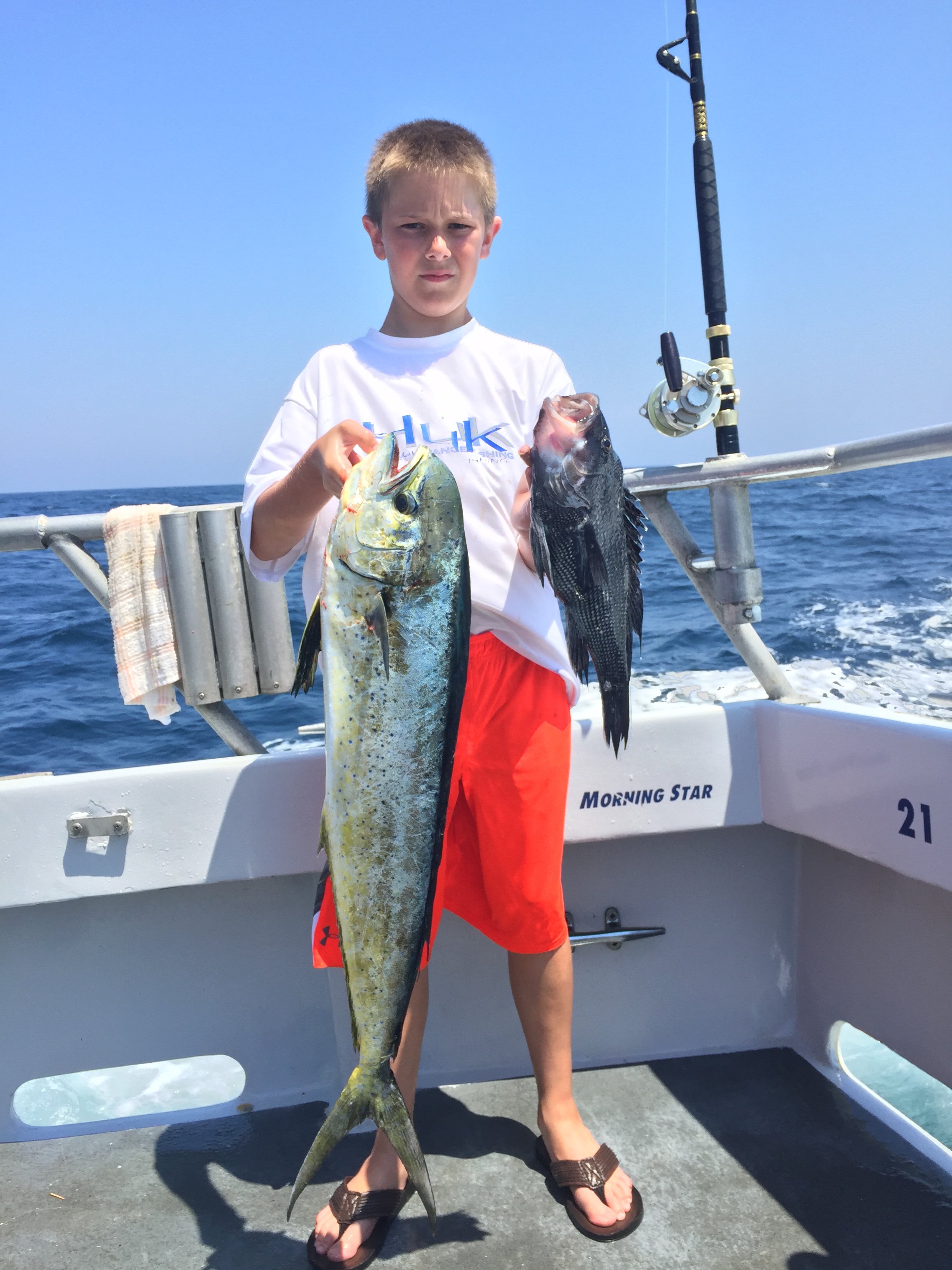 The party boat Morning Star with Captain Monty Hawkins out of The Ocean City Fishing Center had a good bite of sea bass today. The Morning Star also had two keeper flounder and six mahi. The mahi were caught trolling between bottom spots.