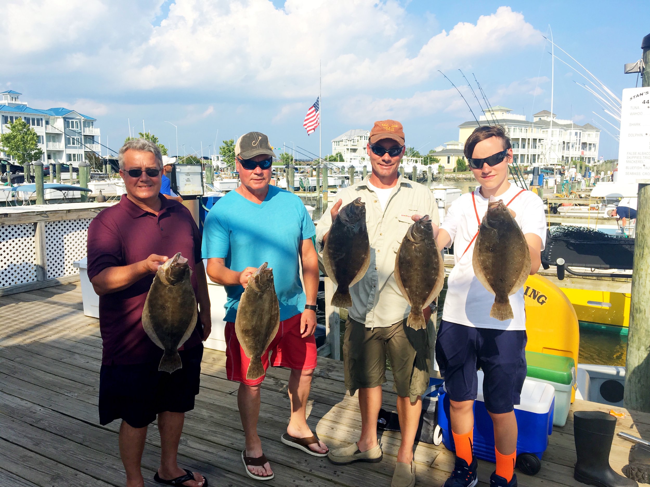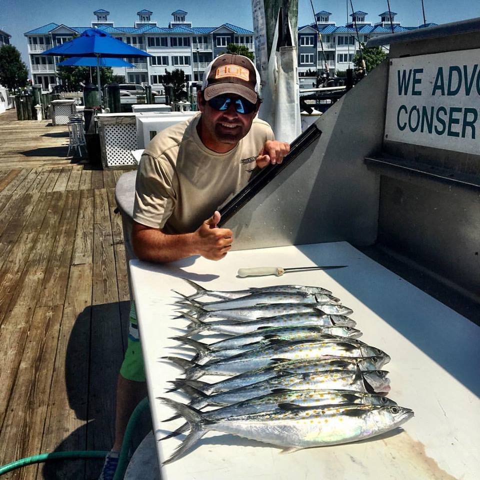 Captain John Prather on the inshore charter boat Ocean City Guide Service was in the ocean and the bay today. Captain John put his morning crew on some good spanish mackerel action at the bass grounds, then this afternoon it was five keeper flounder from the south bay caught on live minnows.
