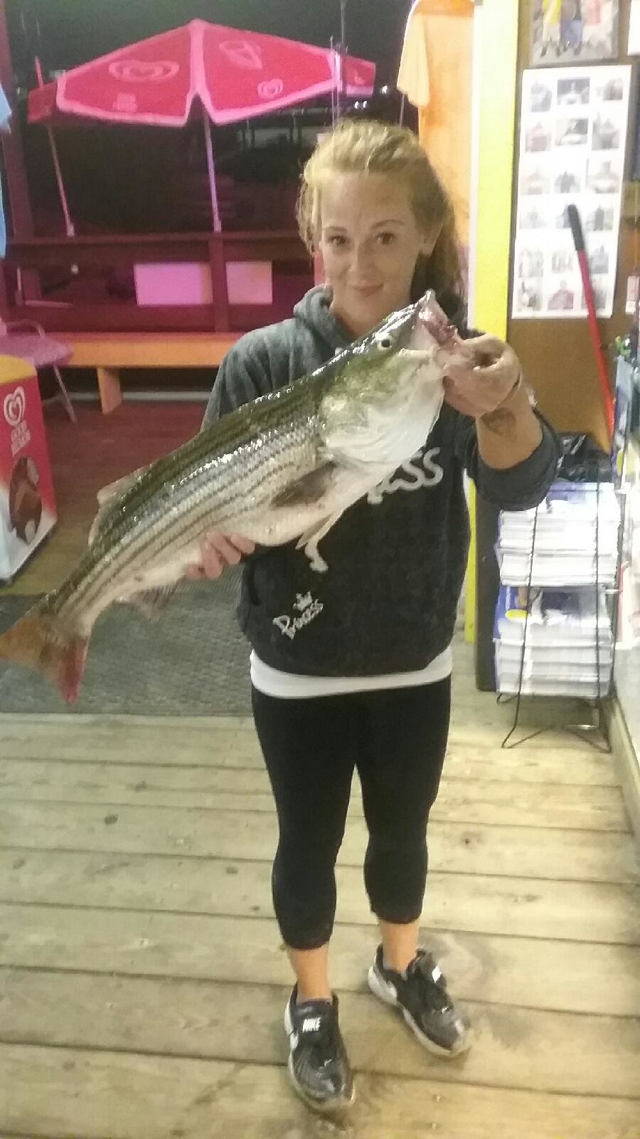 Bear at the Oceanic Pier sent in a couple of photos of Amber Smoker who was at it again fishing the north sea wall. Amber caught a nice keeper rockfish and several throwbacks off of Zoom lures.