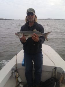Big Bird Cropper and his buddy Shawn were out slinging Roy Rigs today and had a very productive day. The guys found some good sized bluefish and Bird landed a keeper rockfish that fell in the slot at 31″.