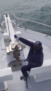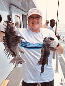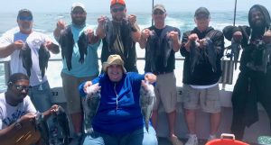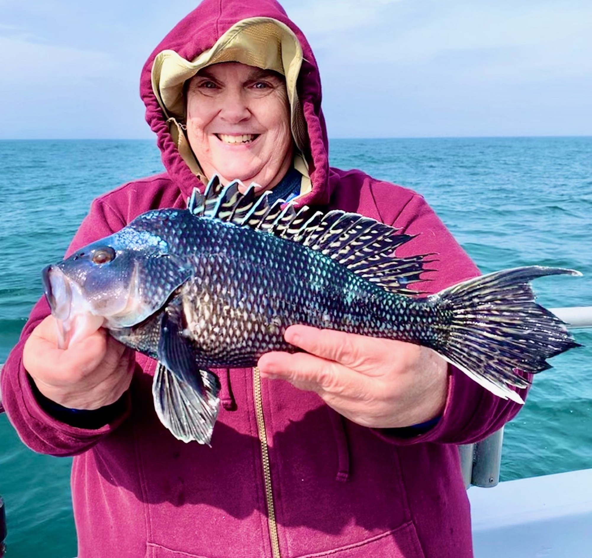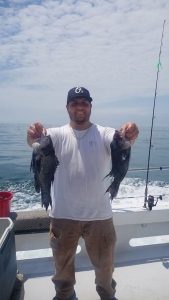 Had Kathy aboard today. What? 37 years now? I remember fishing with her family as a partyboat mate back in 1983. Even then she’d bring grown men near to tears – outfish everyone but her Dad. Only angler to hold pace with Kathy today was Mike who’s fished with me about 25 years. Another Mike, Captain Mike—a true mariner with a lifetime of running freight across oceans—was being too fussy; throwing em back legal. He still had a nice mess in his cooler though.