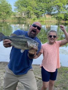 My man David Wells took the family to a local pond while he waits for his brand new Suzuki engine from our friends down at Thornes Marine and landed a dandy! Dave jigged this jumbo largemouth and his daughter Ellie caught her first ever bass on the same trip.