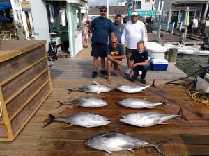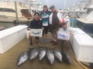 Captain Dan Stauffer of the Fin Chaser dealt with today’s rough seas and had a great day as well putting his anglers on seven yellowfin tuna for the box.