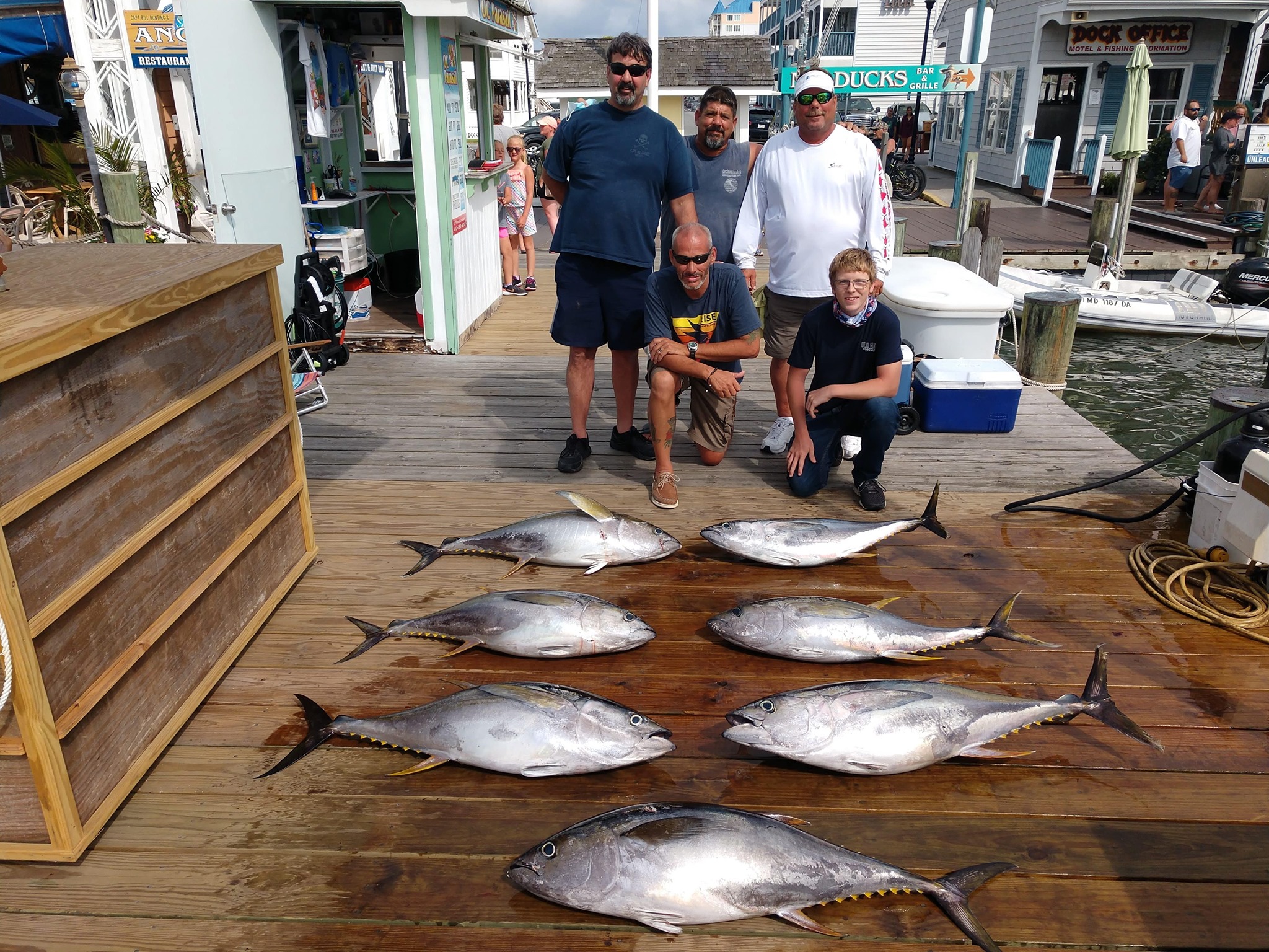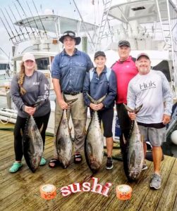 The crew of the Boss Hogg with Captain Corey Kennington put four nice yellowfin tuna in the box and now they are ready for some sushi.