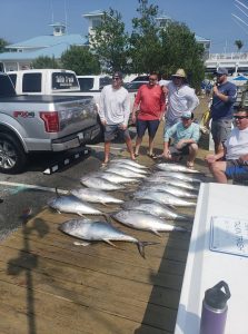 Captain Chase Eberle of Chasin’ Tides Charters showed his anglers some good fishing last night when he helped them release 10 sharks and a surprise red drum. The nice drum was 42″ and was released.