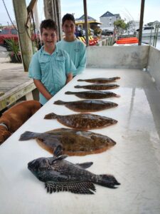 Noah and Kason Harris found this 18″ flounder using minnows in the OC Inlet today.