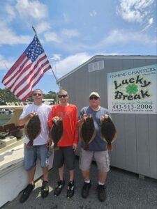 Captain Jason Mumford of Lucky Break Charters had a nice day in the inlet putting these guys on four keeper flounder.