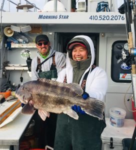 I just got back from a long ride coming back from the Great American Outdoor Show in Harrisburg, PA and was greeted by a nice report from Captain Monty Hawkins of the Morning Star who had some beautiful conditions today and some nice tog over the rail.