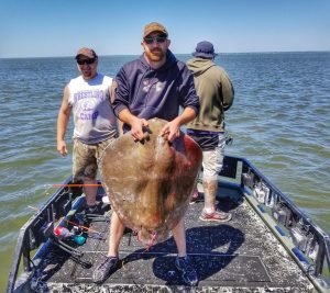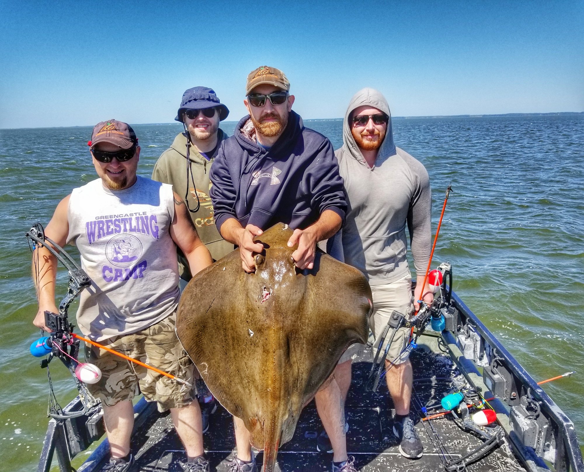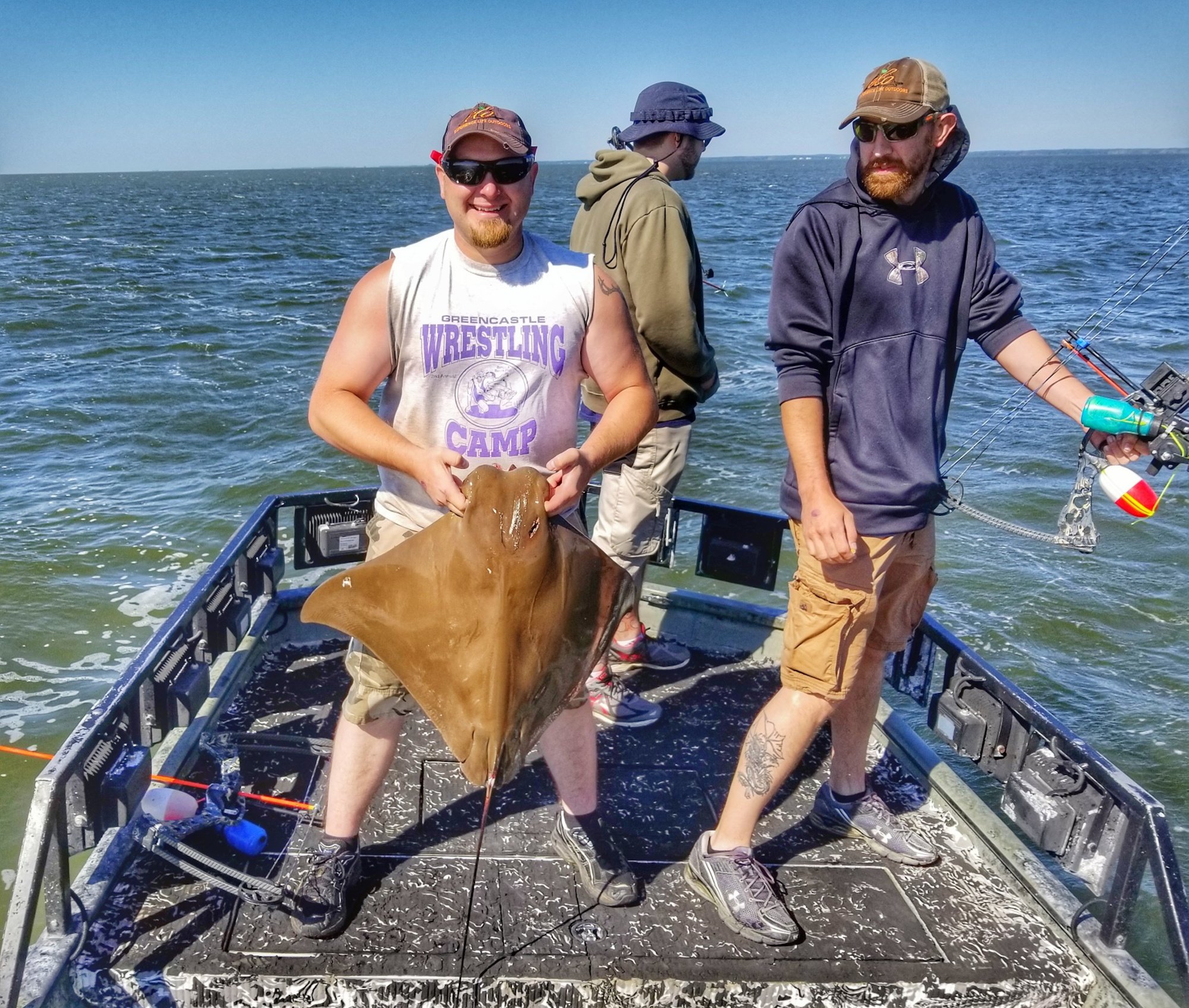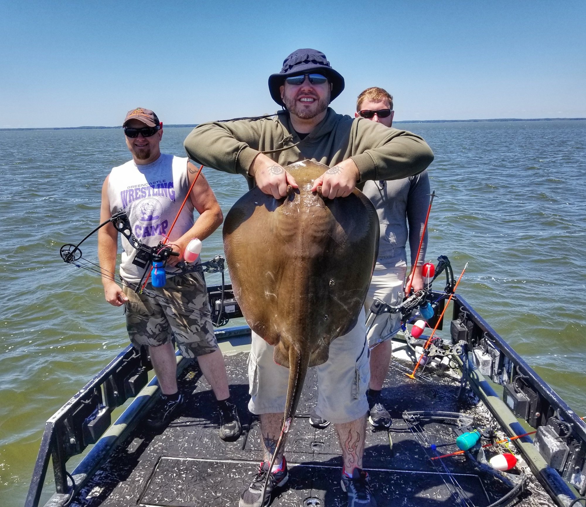 Conditions in the bay were tough for bowfishing today too, but Captain Marc Spagnola of Dusk to Dawn Bowfishing got it done. He put his shooters on some great action for cow nosed and southern rays in the south bay.