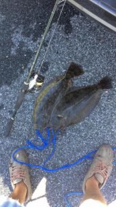 Nick Denny of the Ocean City Fishing Community lucked into a couple of flounder today in the tough conditions as well. Nick used bucktail tipped with Gulp in just a few feet of water to get the job done.