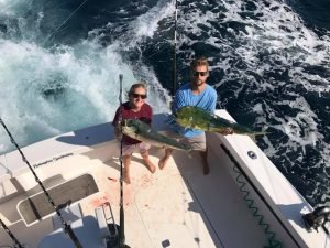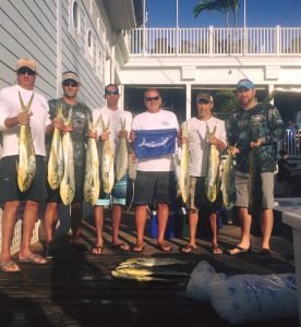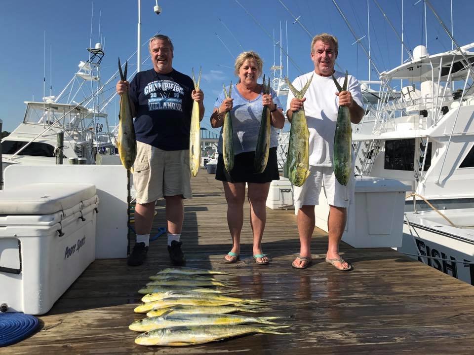 Captain Joe Drosey of Rhonda’s Osprey put his crew on a bunch of mahi yesterday.