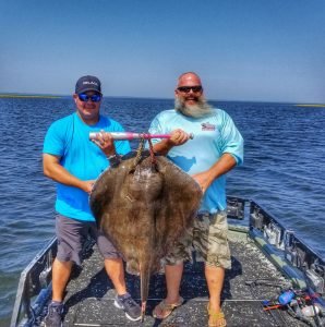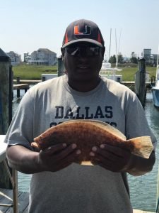 Flounder fishing was tough this morning in the wind, but this keeper found it’s way into the cooler on the Bay Bee with Captain Cale Layton.