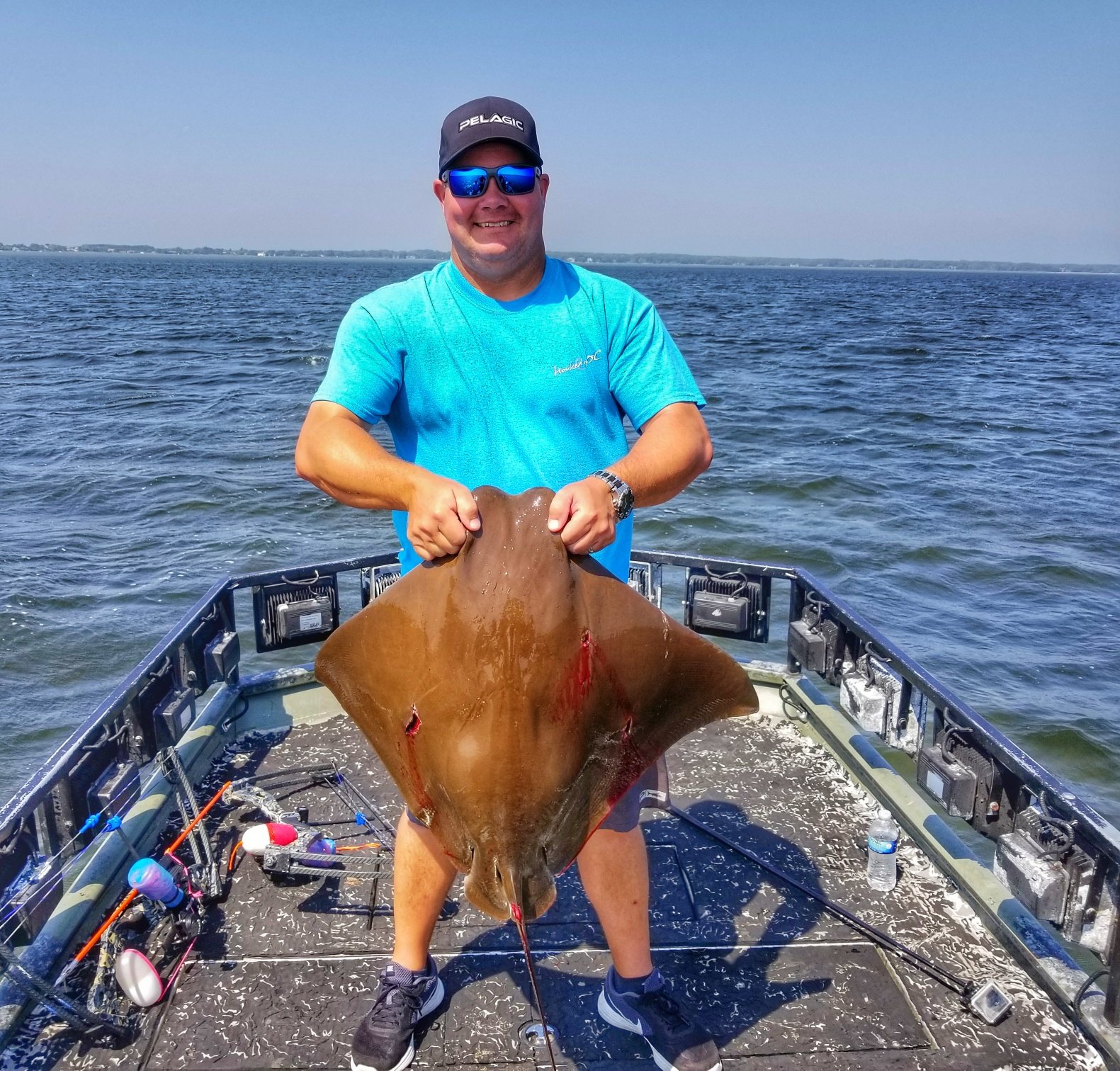 I had the pleasure of fishing with Captain Marc Spagnola of Dusk to Dawn Bowfishing today for a new episode of Hooked on OC with our special guest Captain Jeff Coats of Pitboss Fishing. Neither of us had ever bowfished before so we were both looking forward to it. We realized right away that it would be tough with the way the wind was blowing, but Captain Marc found the rays and gave us plenty of opportunity to shoot. It was definitely a fun, unique experience and combines two of my favorite outdoor activities in hunting and fishing. Captain Marc has had men, women and kids as young as nine years old getting it done so give him a call if this is something you’d like to try. Captain John Prather of Ocean City Guide Service also offers bowfishing as an inshore trip and Captain Jeff Coats offers inshore fishing through Pitboss Fishing. You can find all three of these guys on our Inshore Charters page. FishinOC.com/inshorecharters.