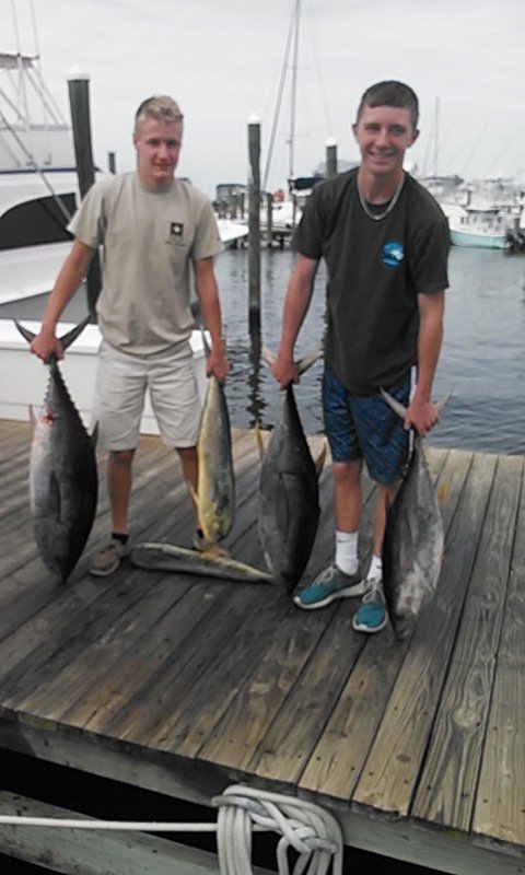 Captain Luke Blume on the White Lightning out of Sunset Marina had one Bluefin, two Yellowfin and two Dolphin on today’s trip.