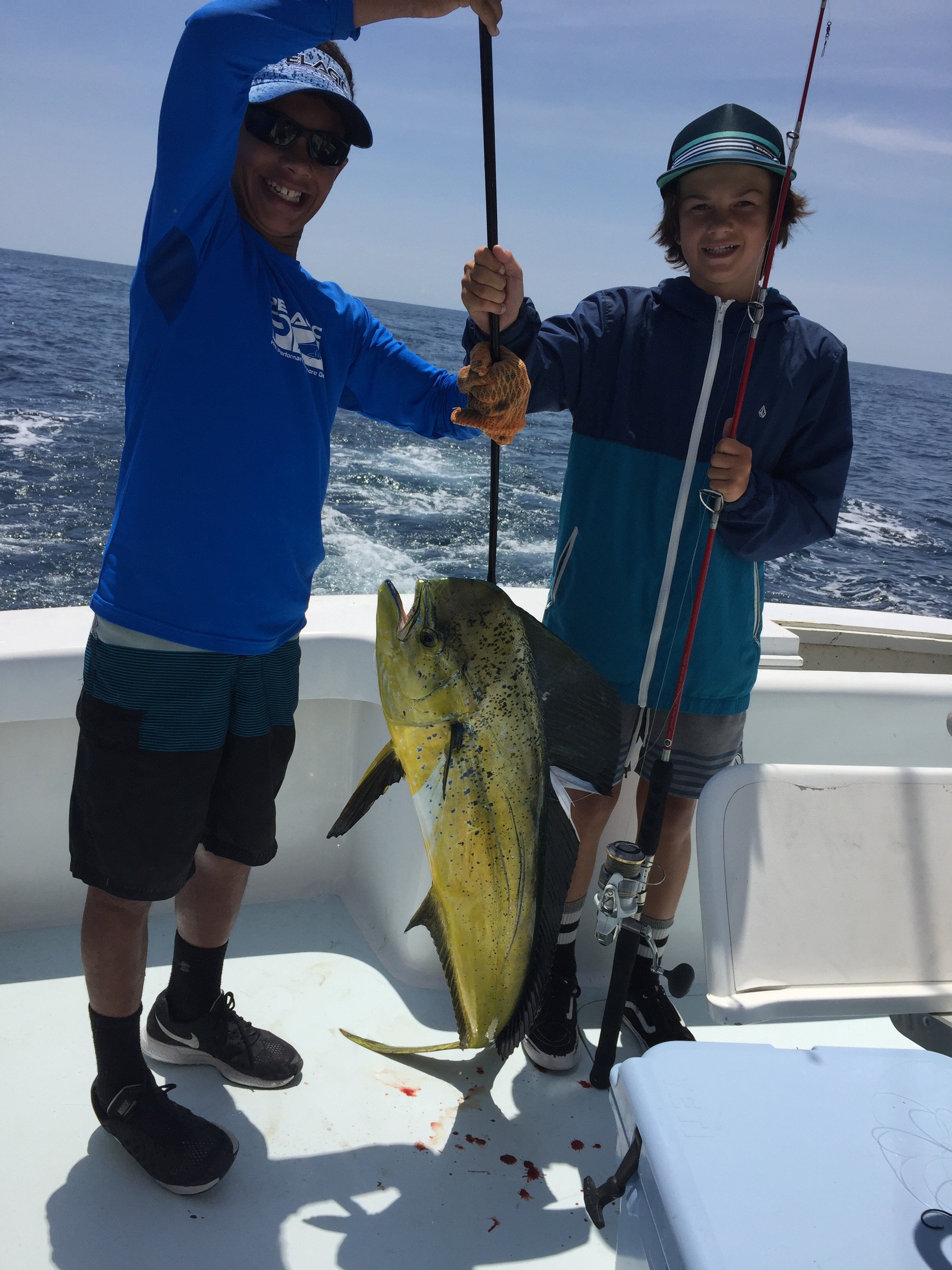 You’ve got to love it when the kids get involved! The Spring Mix II with Captain Chris Watkowski and Mate Marshall Freng had a good day catching three Yellowfin at the Hot Dog and then adding five nice Dolphin in the Baltimore canyon. Here are Ayrton Pryor and Gavin Carmody with a nice gaffer from the trip.