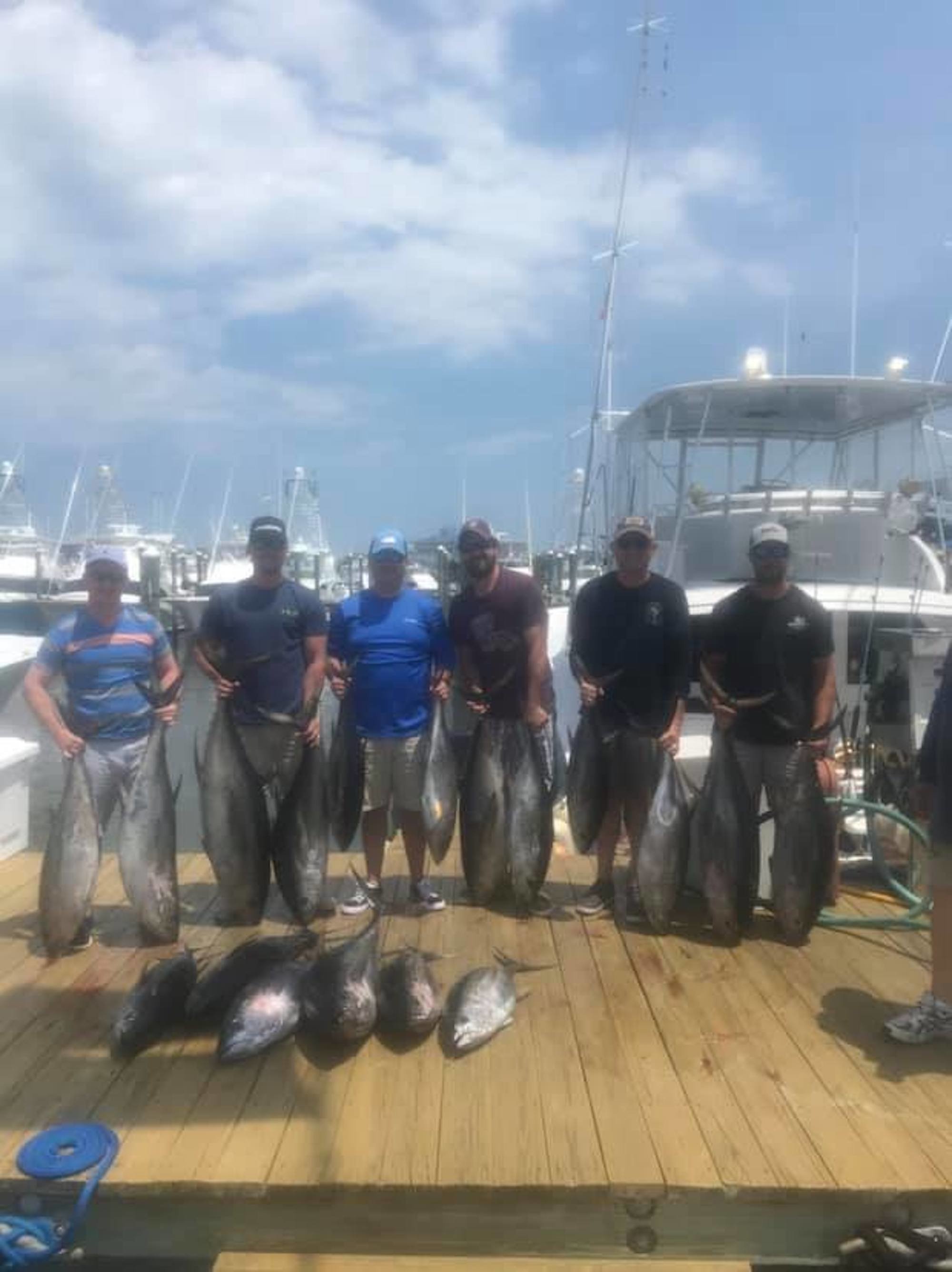 The crew of Reel Chaos with Captain Anthony Matarese Jr. filled the fish box today too with a limit of “angry” yellowfin tuna and an early trip back to the dock.