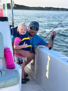 Ava Kepp was fishing with her Dad Nathan this evening when she caught her first “on her own” fish with this juvenile sea bass.