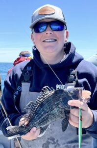 Captain Chris Mizurak of the Angler reported a tough start, but things picked up nicely in the afternoon with lots of sea bass and a couple of flounder.