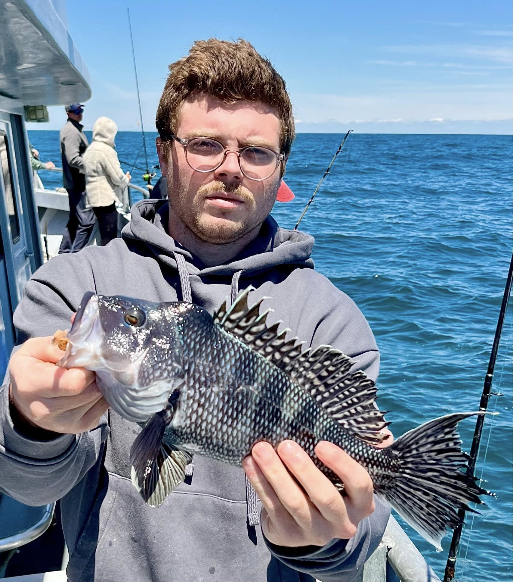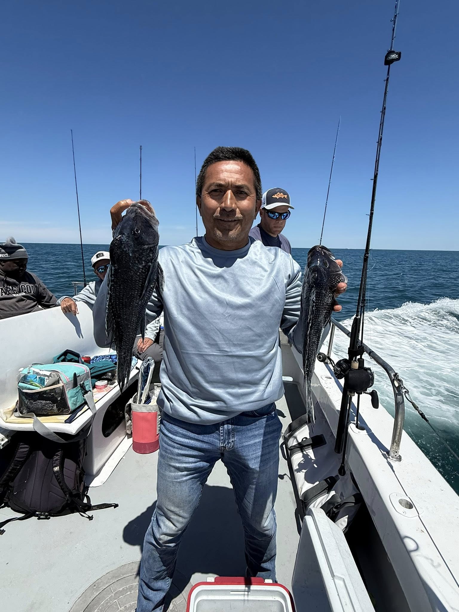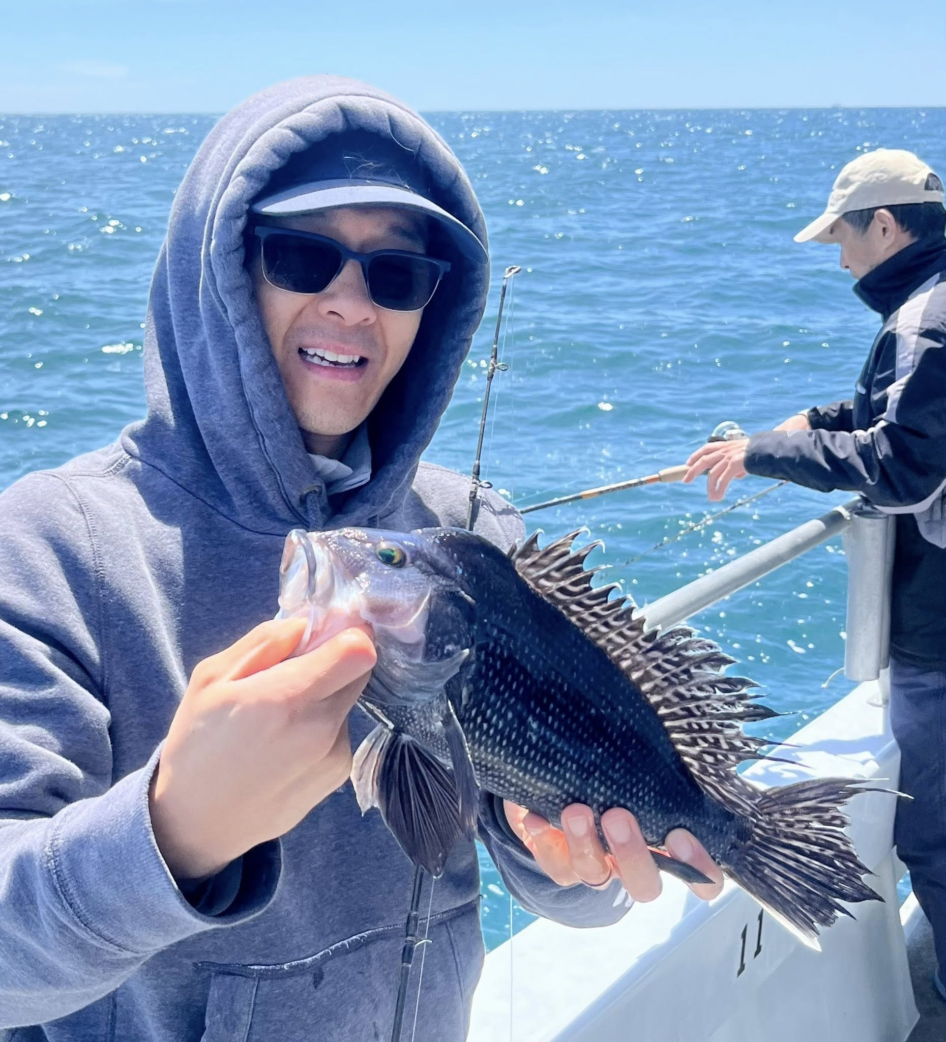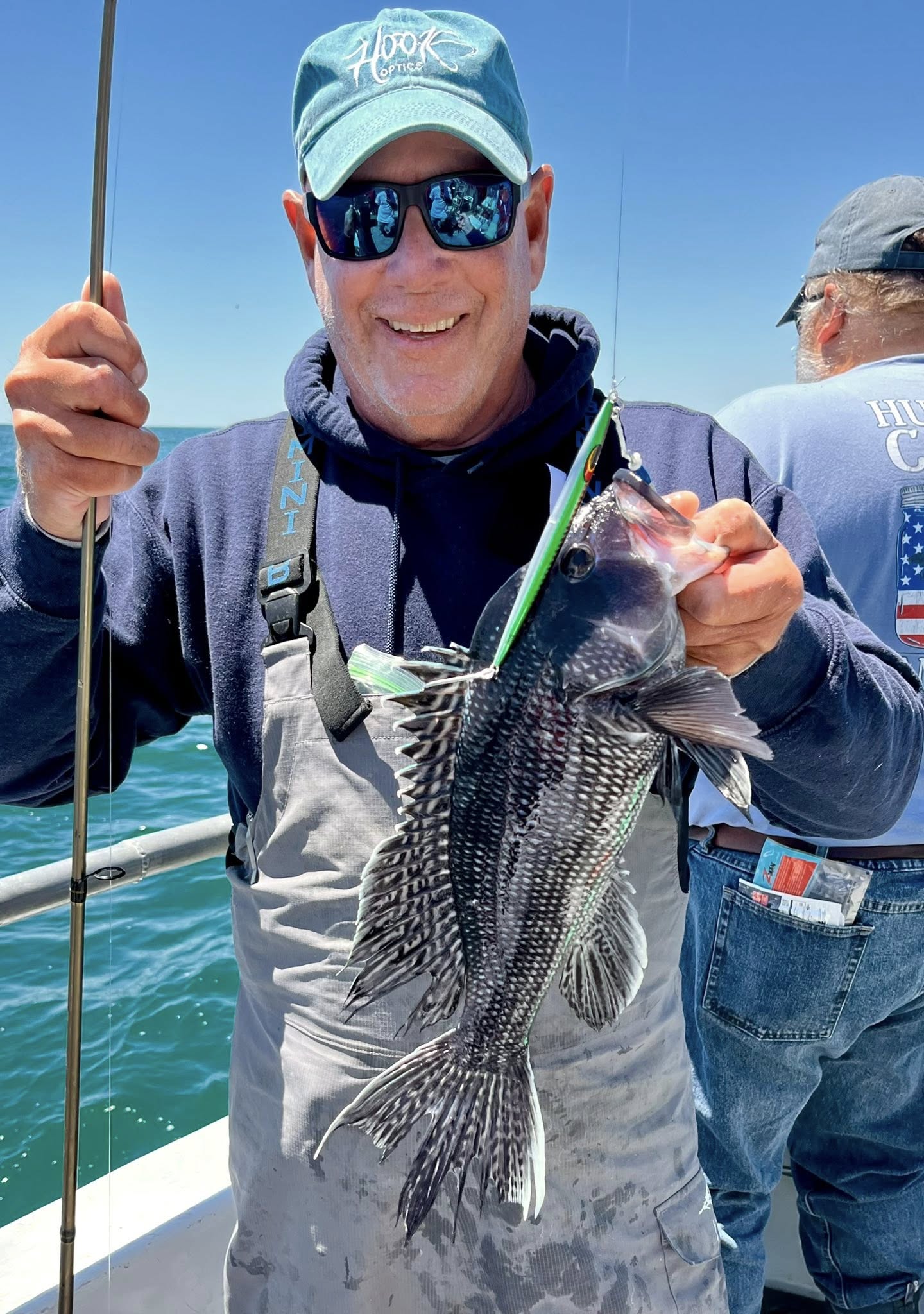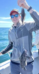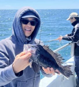 Strangely, today sea bass all but shut down after 11. Oh, we still caught some; just not at the same pace, and we weren’t unique. The VHF radio all but dripped tears with skippers complaining about the cbass bite.
