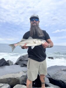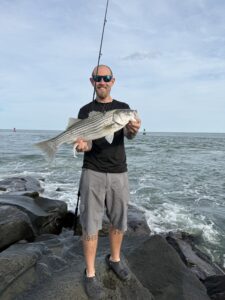 Rob Bukszar and Morgan Mericle were casting the north jetty while I was fishing the sandbar and they were having good luck with the catch and release stripers too.