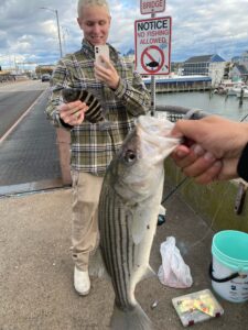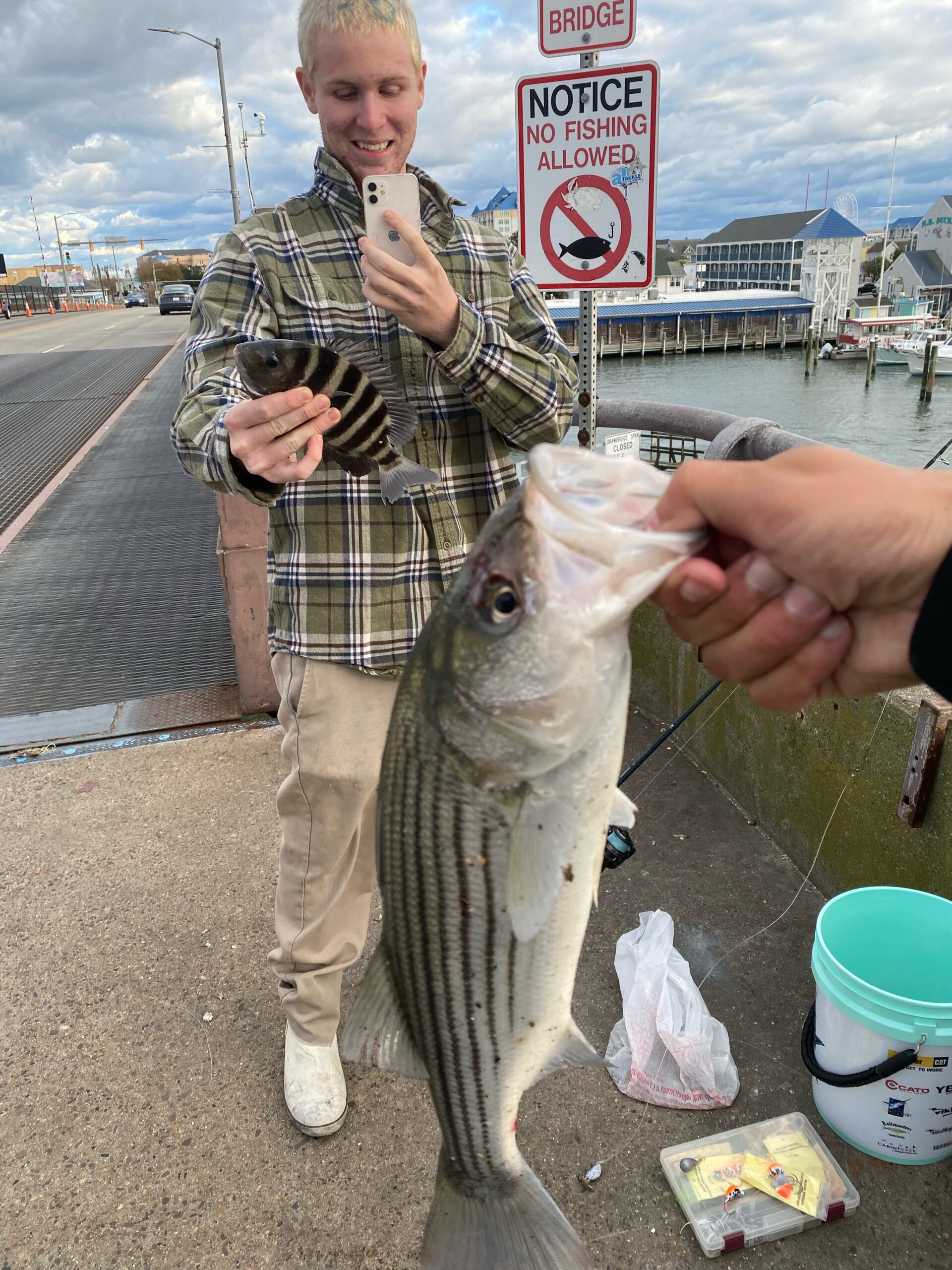 Hunter Dortenzo and Andrew Cummings from the OC Fishing Center had a good time on the bridge catching some stripers and some sheepshead.