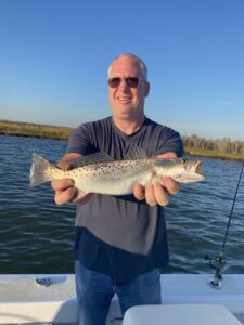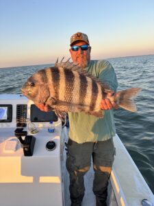 Josh Twilley caught this big 24″, 12.95 pound sheepshead over on the Chesapeake Bay while his buddy Don Hall III caught a nice speckled trout.