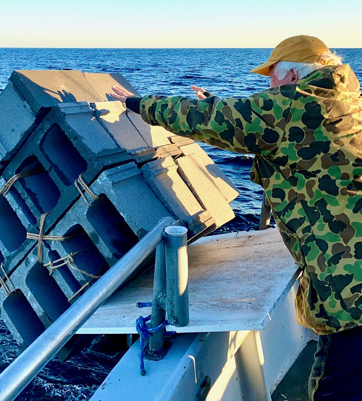 Well now.. Another calm Saturday. Sweet. Made an early start of it and enjoyed today’s sea conditions while headed off. Gary gave our reef blocks a push at “Cristine’s Blast” reef. We were soon underway again..