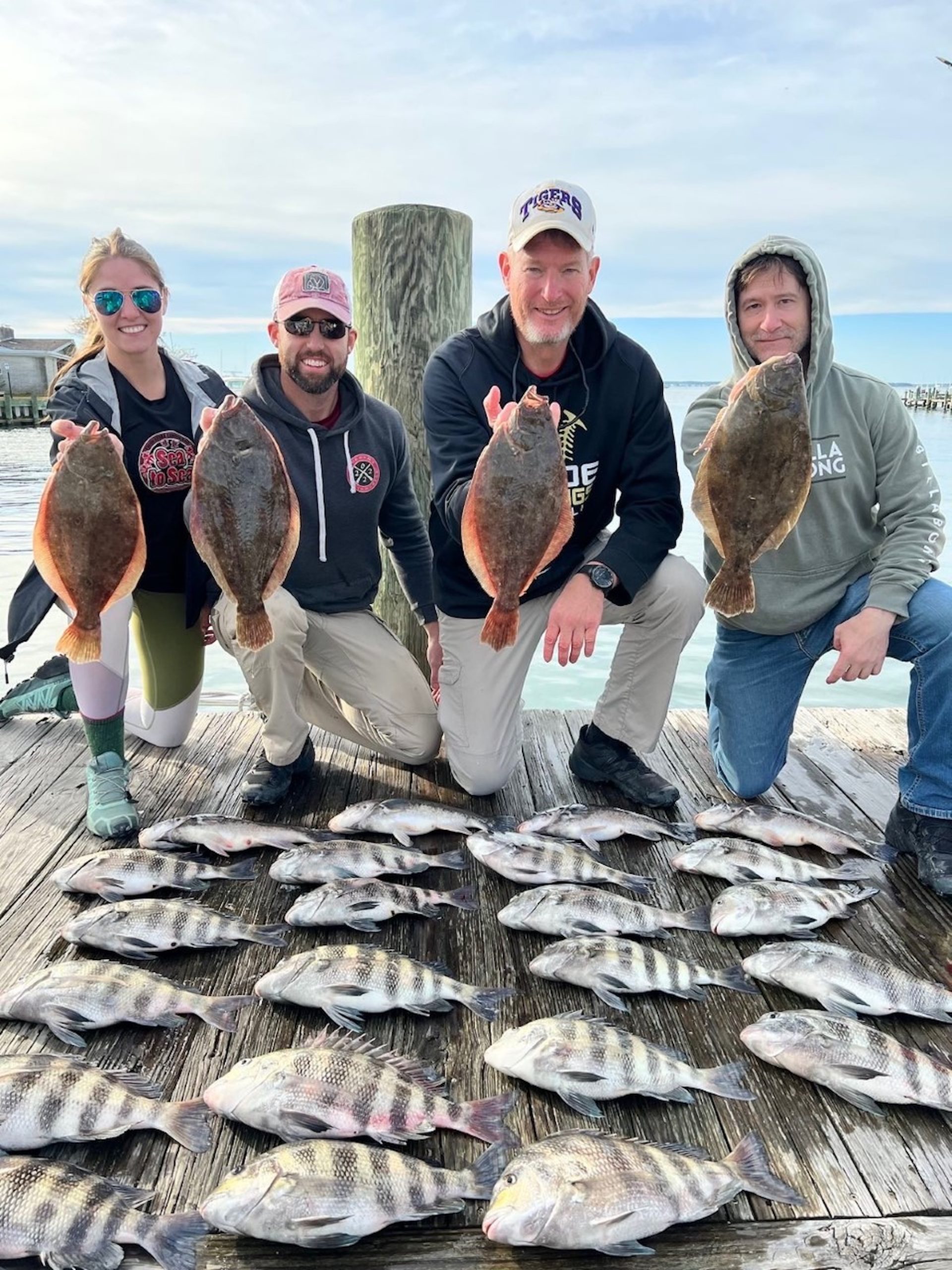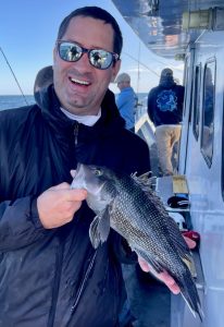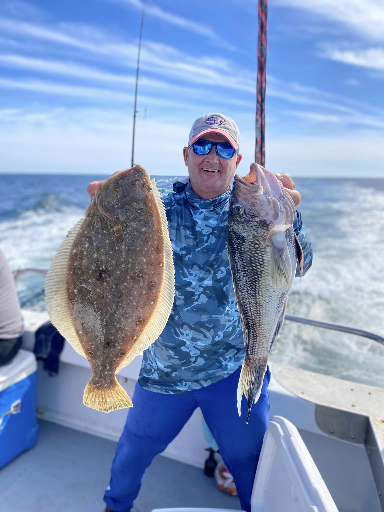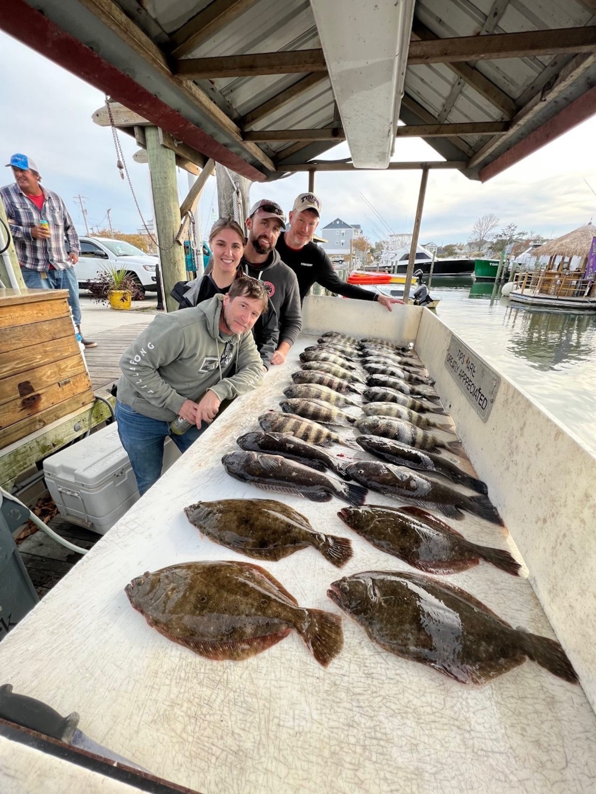 There has been some great inshore fishing going on the past few weeks and today was no different with some really good fishing for flounder and sheepshead in the bay and sea bass in the ocean. Dave W., Rebecca H., Shaun R., Steve C. and Ryan C. had an awesome day on the south jetty and in the east channel when they ended up with four keeper flounder and 19 sheepshead.
