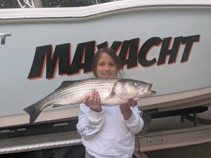 Maya Lavadas caught a 28″, 6.75 pound rockfish while fishing with Blake Gunther and crew that was good for first place junior angler in today’s Rock The Choptank tournament.