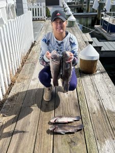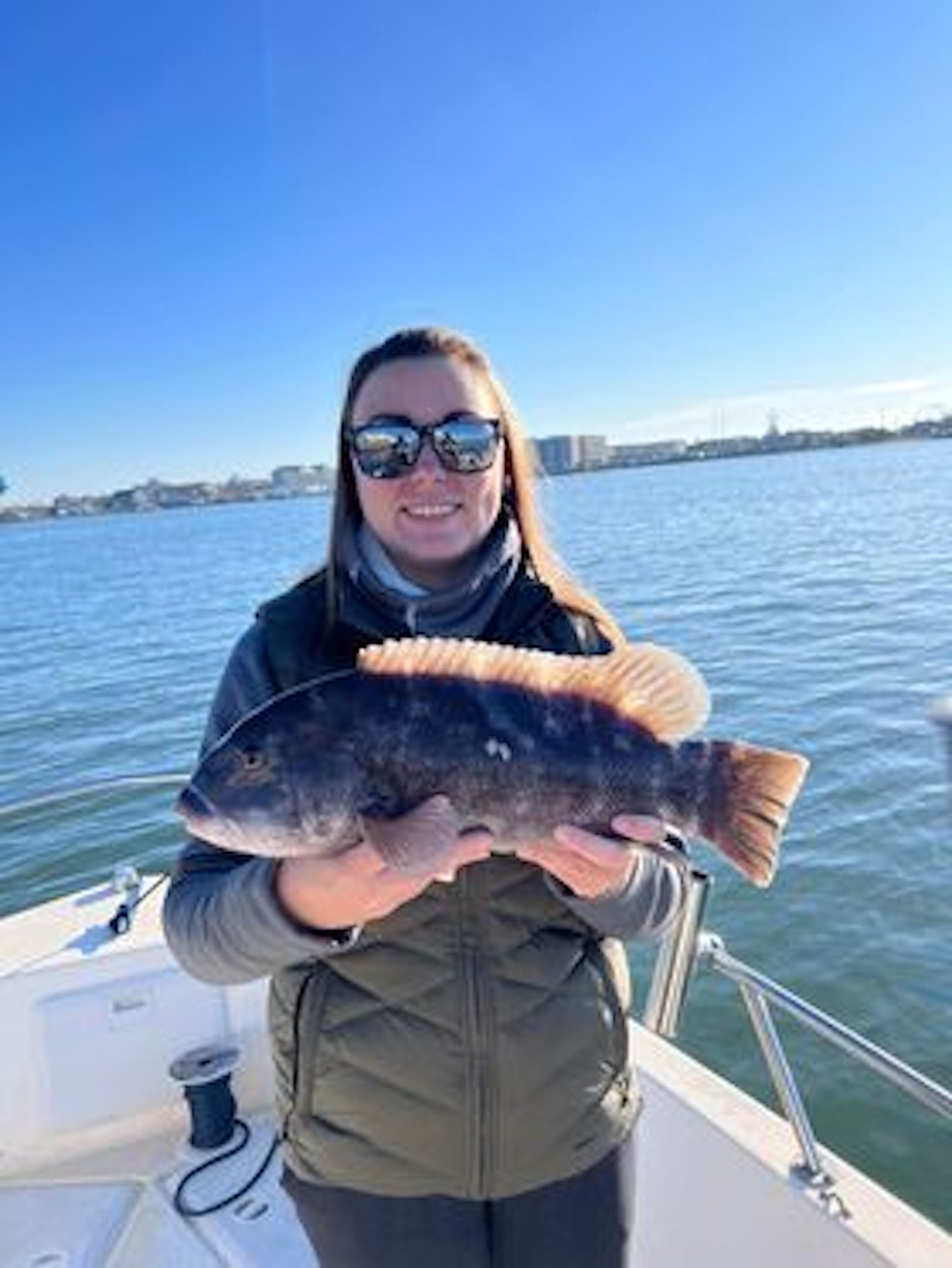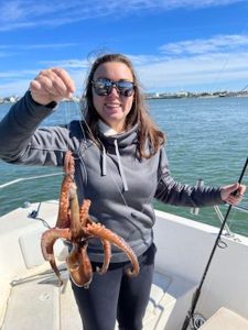 Ashlee Hammonds caught a nice keeper tautog and an octopus while fishing with her boyfriend Matt Hollinshead on this beautiful day.